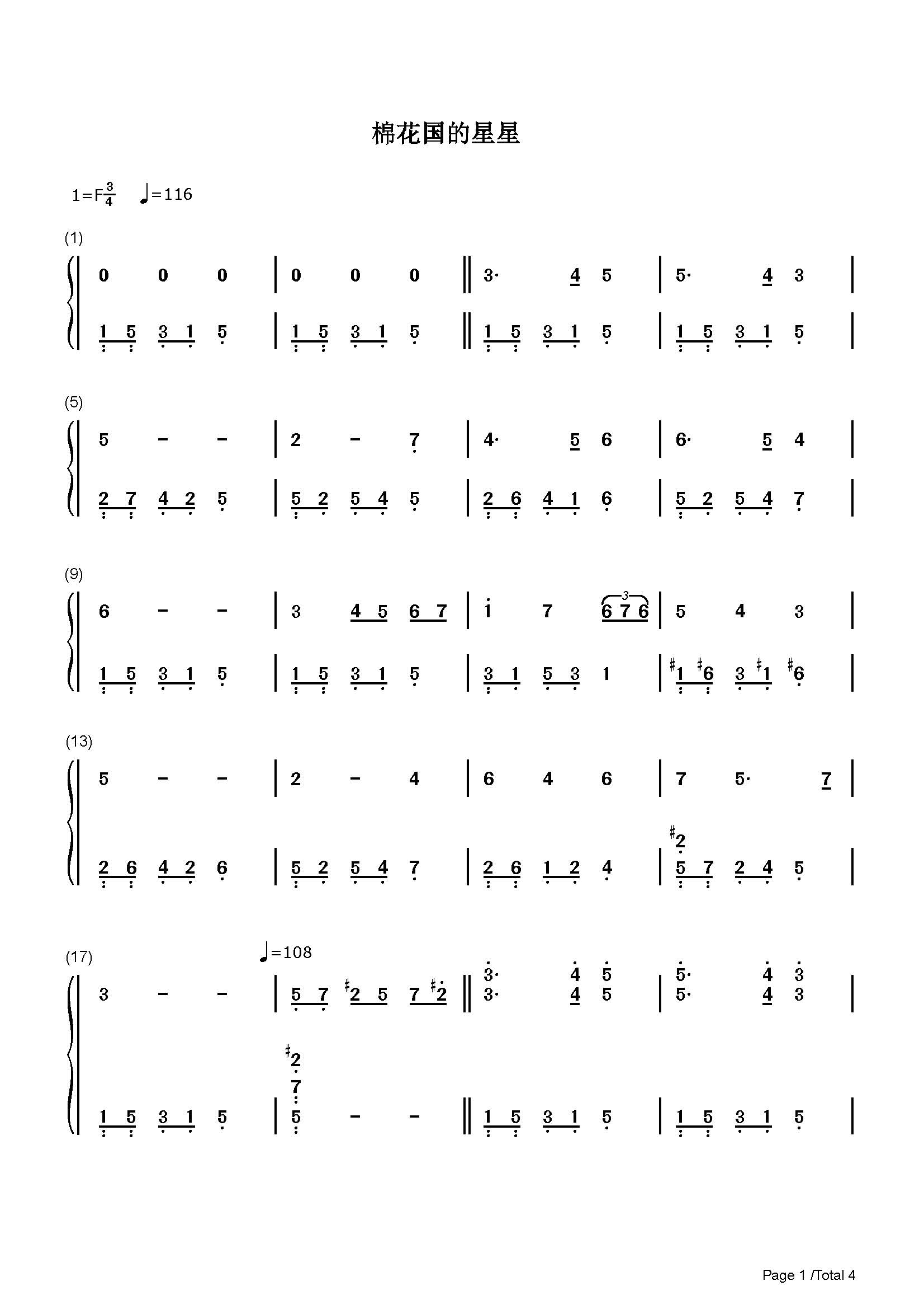棉花国的星星是理查德•克莱德曼的钢琴曲。理查德•克莱德曼(Richard Clayderman,原名Philippe Pagès ),1953年12月28日出生于法国巴黎,艺术家、钢琴表演艺术家。他擅长演奏肖邦、拉威尔、德彪西等人的作品,在古典音乐界是一颗明日之星。在中国,克莱德曼爱好者年龄层次相当广泛。优雅的钢琴让改革开放初期仍有一点保守的中国人找到了一种浪漫又不露骨的美,培养起了一批“琴童”。克莱德曼也经常访问中国,每年都在中国有数场演出。SARS时期无法来华的克莱德曼,还特别为中国医务工作者录制了特别的MTV——《致天使的诗》,鼓励他们要努力共度难关。由于流行音乐的发展,克莱德曼对中国的影响远不如昔。但作为改革开放初期外来文化的先锋,克莱德曼对当代中国音乐的影响是巨大的。