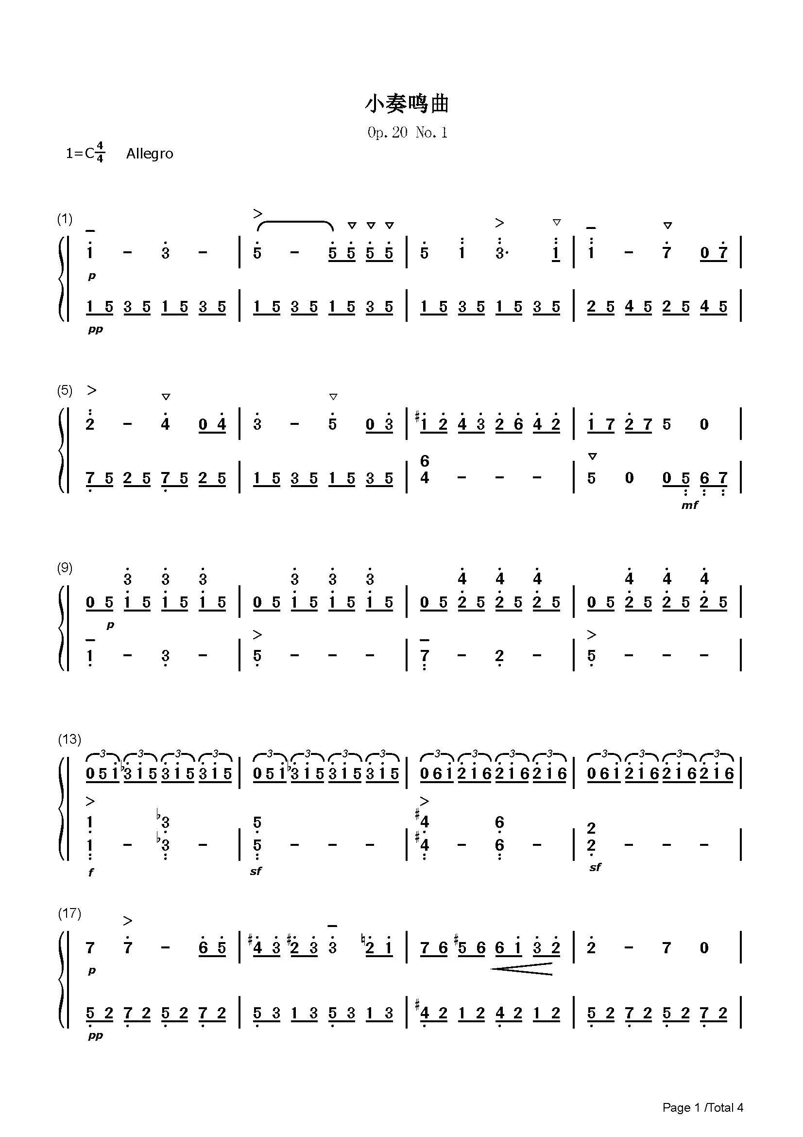 库劳小奏鸣曲OP.20 NO.1是德国著名的钢琴演奏家库劳的曲目。他是一位有很高造诣的职业长笛演奏家,为长笛创作的乐曲流传至今。库劳一生的创作包括歌剧、室内乐、钢琴曲、长笛曲、小提琴曲和许多声乐乐曲,但大多已散失,其中以钢琴小奏鸣曲最为出色,具有很高的练习价值。库劳的钢琴小奏鸣曲虽然简易、短小,不具有深刻的艺术内涵,但是它们同样是建立在维也纳古典主义音乐结构的基础之上,体现了典型的古典主义风格的作品。通过这些小奏鸣曲的学习,不但可以从中了解古典乐派钢琴奏鸣曲的曲式结构,而且可以学习和训练敏锐、轻快地触键,准确严密的节奏,均匀、透明的音色,稳定统一的速度,典雅、纯净的情趣。同时,也为进一步学习海顿、莫扎特、贝多芬乃至舒伯特的钢琴奏鸣曲作好准备。库劳创作的钢琴小奏鸣曲并非仅12首,但是大师逝世前两年,即1830年住宅的一场大火烧毁不少创作手稿,留下了难以弥补的历史遗憾。