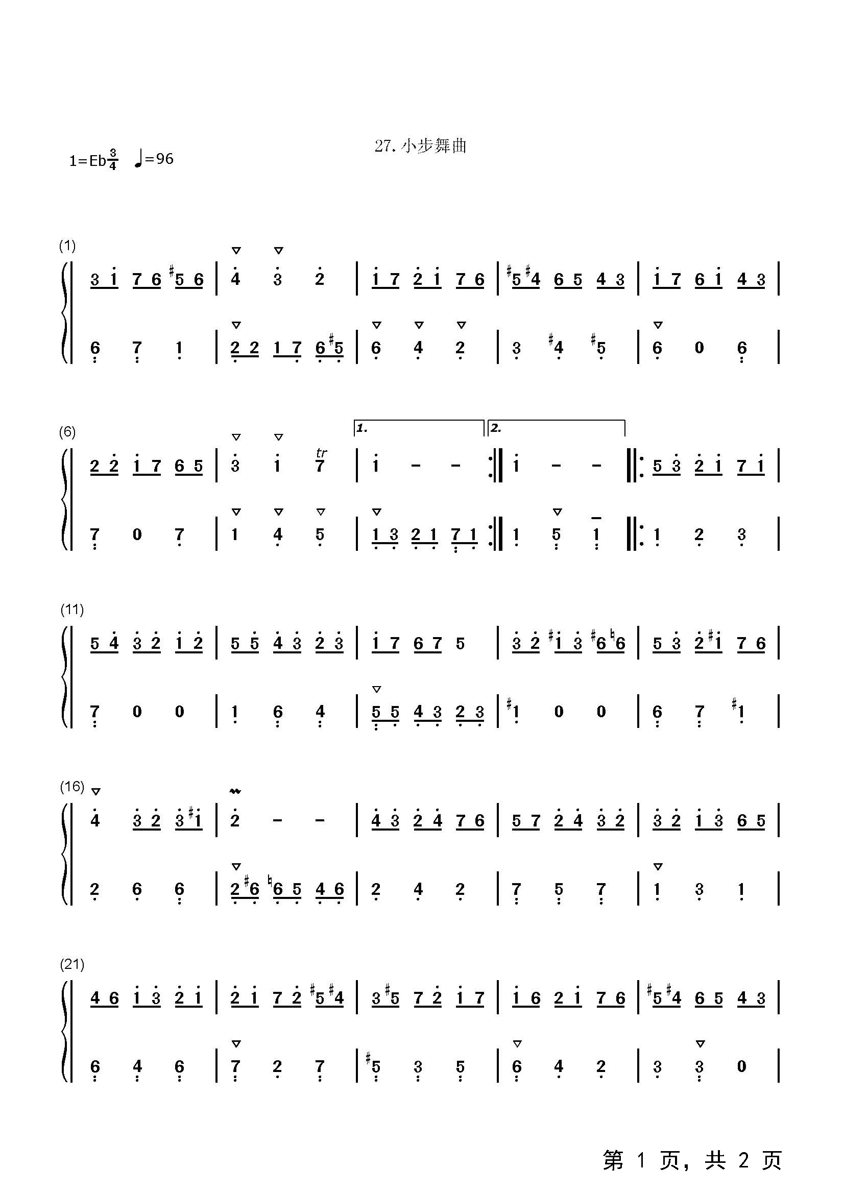 作品分类:古典钢琴简谱