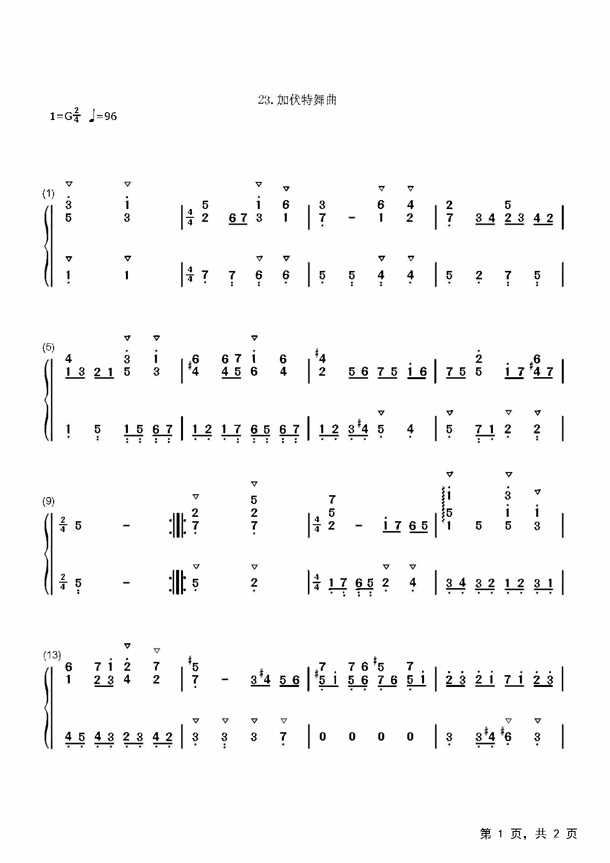 《加伏特舞曲-23》是德国作曲家巴赫为其妻子安娜·玛格达蕾娜写的练习小曲。巴赫把西欧不同民族的音乐风格融为一体,集意大利、法国和德国传统音乐中的精华,曲尽其妙,珠联璧合,天衣无缝。法国音乐评论家保罗·朗杜尔所言:“巴赫创作的目的并不是为后代人,甚至也不是为他那个时代的德国,他的抱负没有越出他那个城市、甚至他那个教堂的范围。每个星期他都只是在为下一个礼拜天而工作,准备一首新的作品,或修改一首旧的曲子;作品演出后,他就又把它放回书柜中去,从未考虑到拿来出版,甚至也未想到保存起来为自己使用。世上再也没有一首杰作的构思与实践像这样天真纯朴了!”