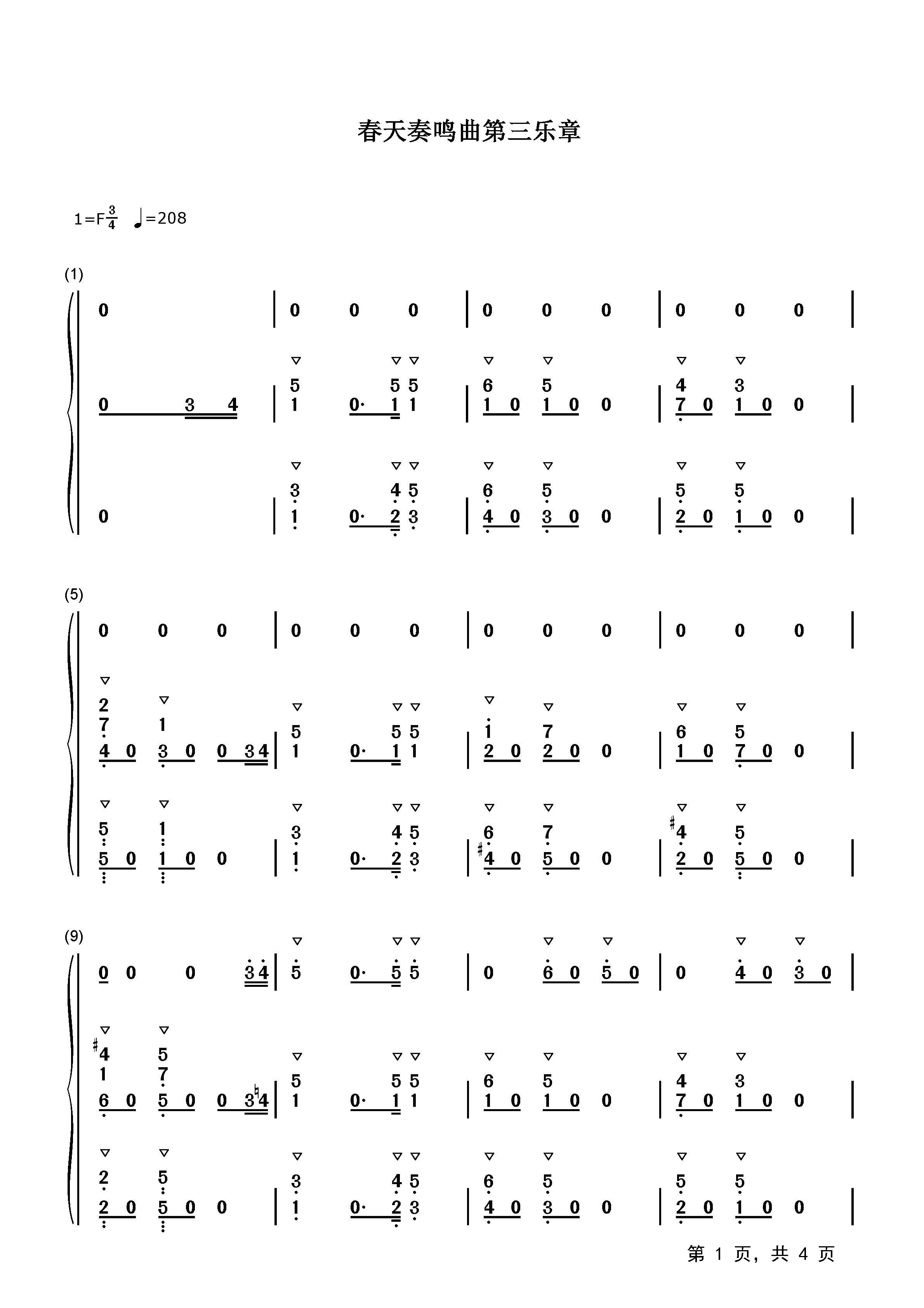 《春天奏鸣曲第三乐章》由贝多芬创作。F大调,3/4拍。这是一首轻快的诙谐曲,用三部曲式写成。这个乐章写得十分洗练,主题富有青春的活力。贝多芬写过9首小提琴奏鸣曲。这首F大调奏鸣曲是第五首,作品编号24,作于1801年,是他到了维也纳最初10年的作品,属于他早期稍晚一些的作品。这时贝多芬已经31岁,创作技巧已趋成熟,他的个性已基本形成,所以他那些无比热爱生活的炽热的激情,在这首《F大调奏鸣曲》中完全体现了出来。1801年,贝多芬的身体已很不健康,耳疾害了好几年一直没有治愈,而且日益加剧,这仍然给他带来痛苦。但贝多芬并不因此而悲观失望,正如他自己说过的那样:“艺术家是一团火,他是不哭的”,高尚的情操使他写出了充满青春朝气和乐观情绪的《F大调奏鸣曲》。这部作品所有4个乐章的主题都具有绚丽、甜美如春光灿烂的气质,所以被人们称之为《春天奏鸣曲》。