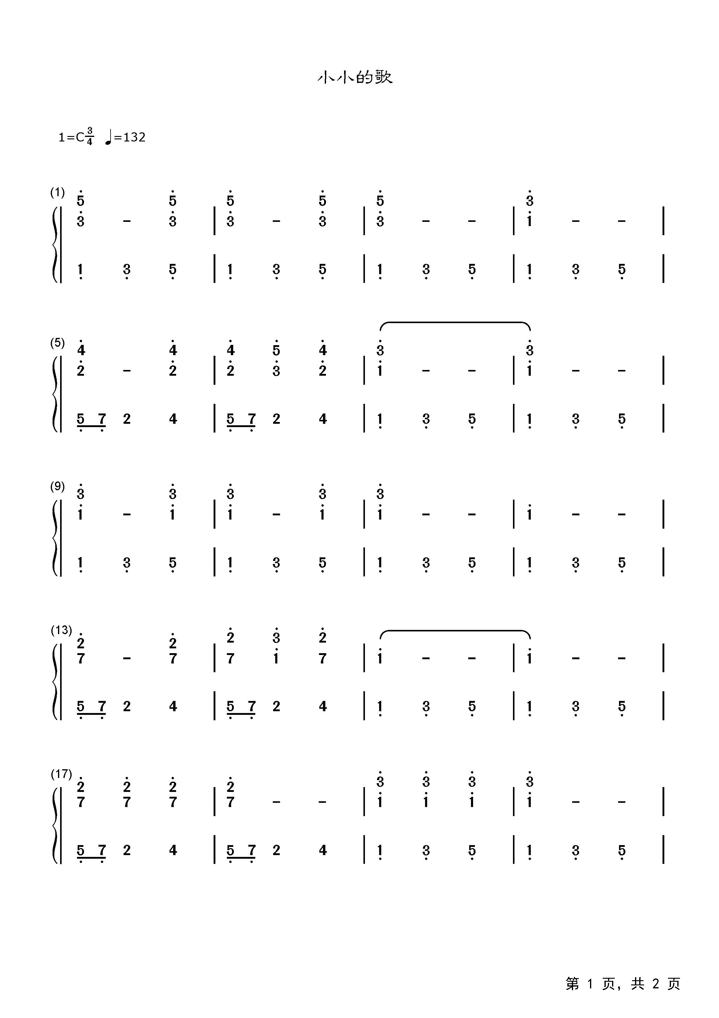 《小小的歌》是奥地利作曲家、钢琴家、音乐教育家卡尔·车尔尼的曲子。卡尔·车尔尼是贝多芬最得意的学生,贝多芬曾在1801年--1803年的三年间免费教他弹奏钢琴。他对于贝多芬的作品积极宣传,并在他的作品500号《钢琴理论及演奏大全》的第四册的第二、三章中论述如何正确演奏贝多芬的作品。他能够背奏贝多芬的全部钢琴作品。车尔尼作为一名钢琴教育家,培养了弗兰兹·李斯特这样的学生。他也免费教李斯特弹琴,李斯特也说:“我的一切都是车尔尼教我的。”作为一名钢琴作曲家,他一生写了无数钢琴练习曲,是学习钢琴的学生练习的基础教材。他的地位在于在贝多芬时代和现代钢琴演奏架起了一座桥梁。