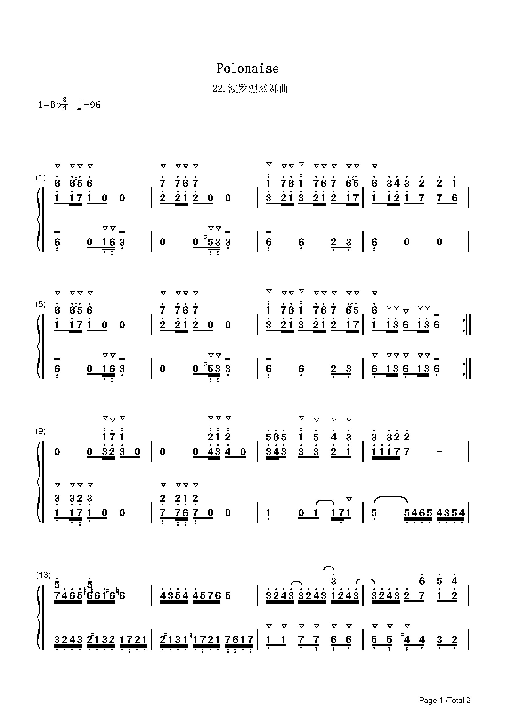 波罗涅兹舞曲-22钢琴谱-巴赫-降B调 -古典钢琴简谱