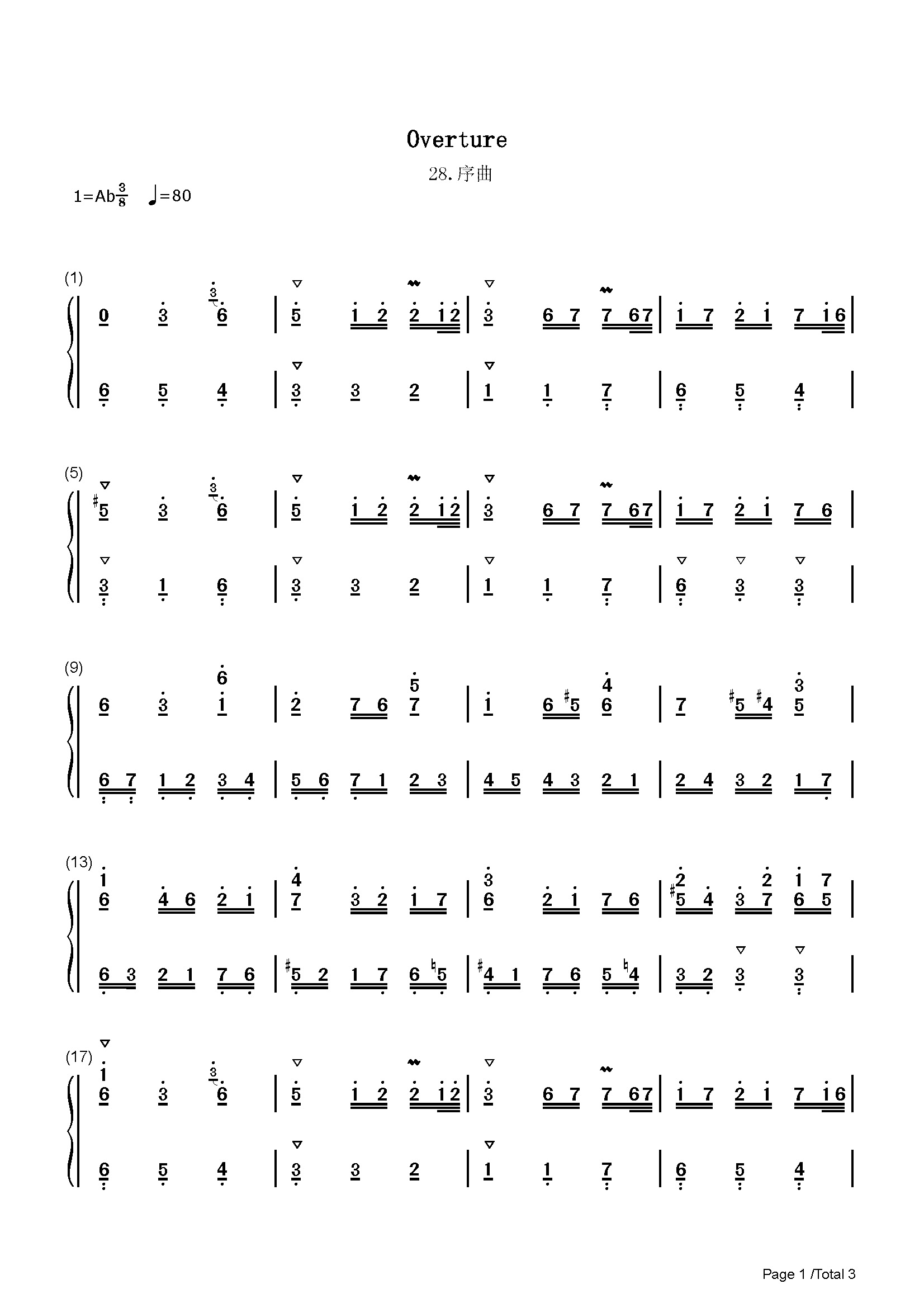 作品分类:古典钢琴简谱