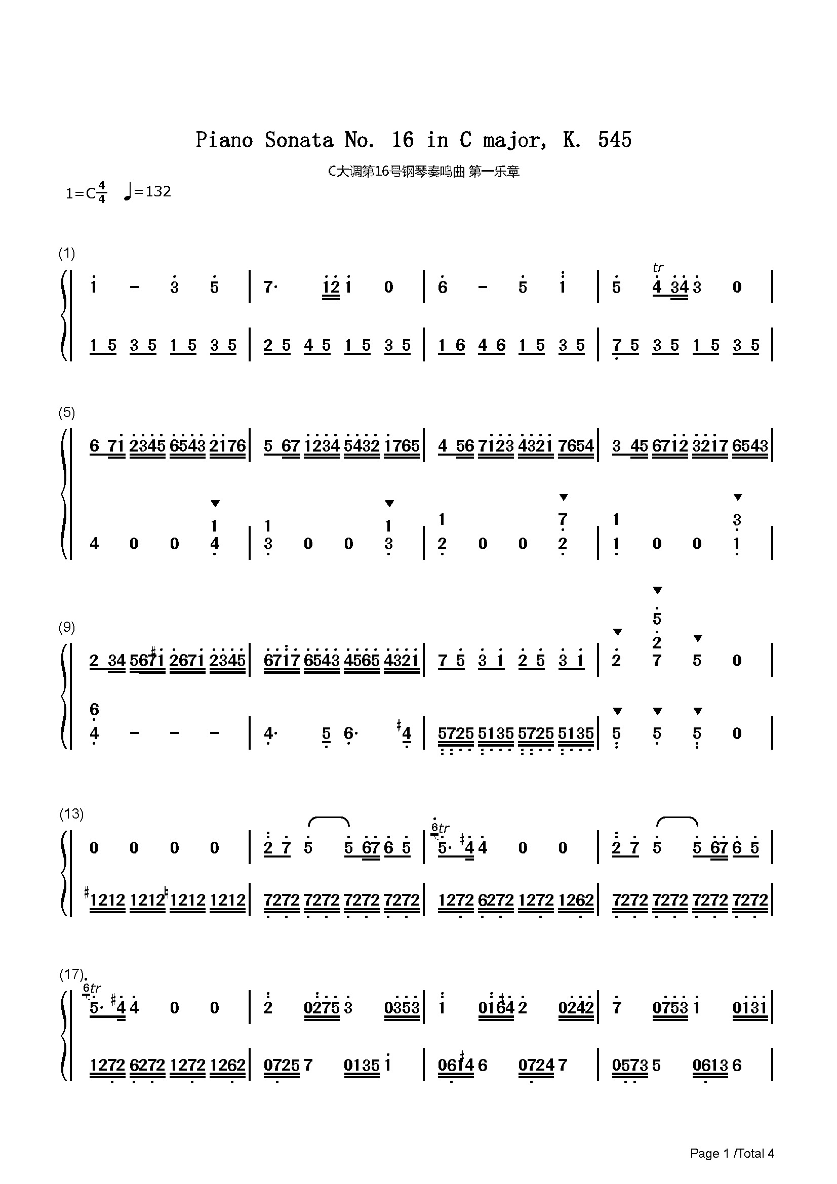 作品分类:古典钢琴简谱