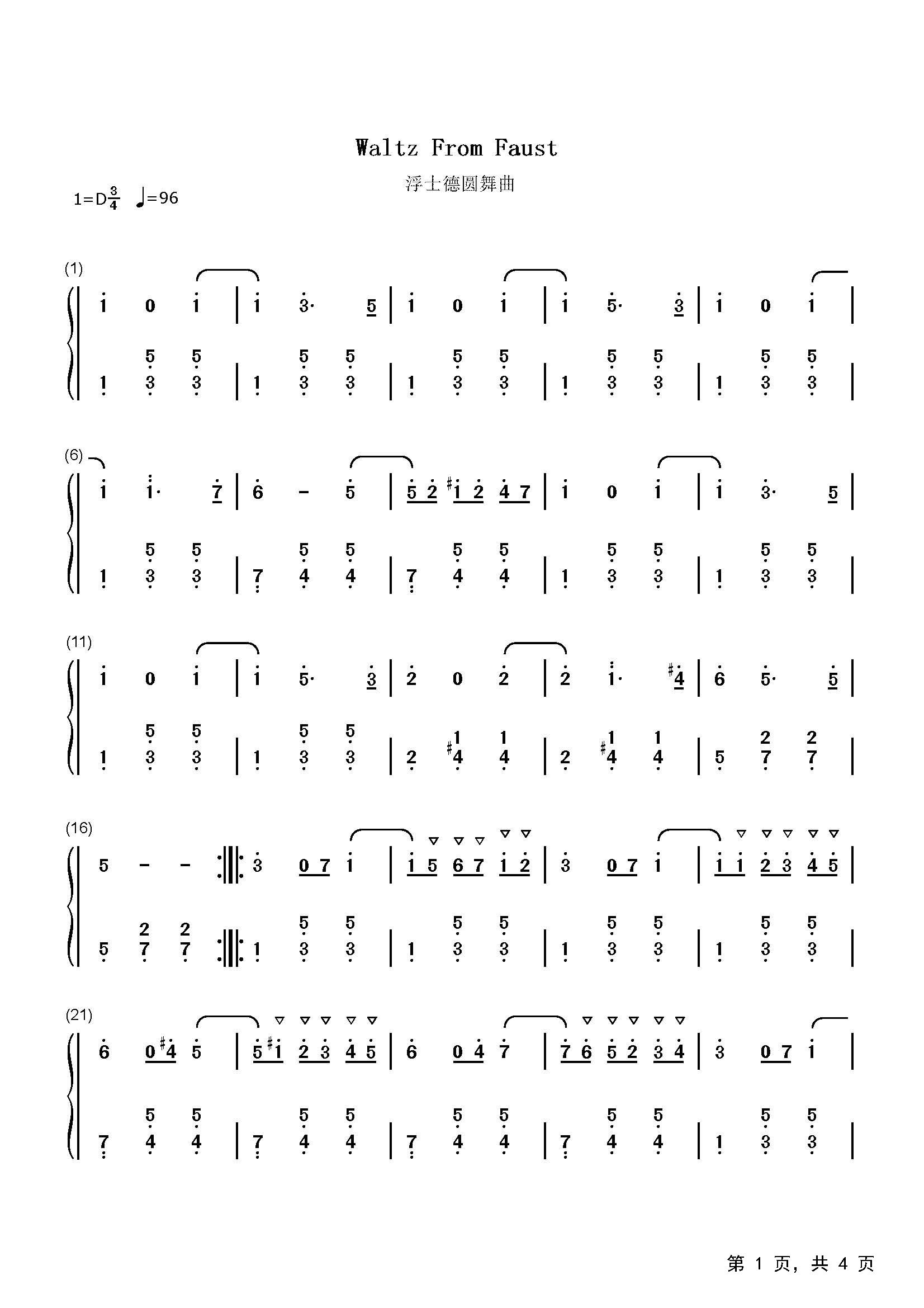 《浮士德圆舞曲》是法国作曲家夏尔·古诺创作的曲子。1851年古诺创作了第一部歌剧《萨福》,但是反响平平。1852年的第2部歌剧《残酷的修女》,也遭到失败。1859年根据歌德作品改编而成的歌剧《浮士德》取得极大成功,因为曲调通俗,色彩丰富,抒情柔美,开创了一代新风,奠定了他世界性的地位。此外,他的著名歌剧作品还有根据莎士比亚作品改编的《罗密欧与朱丽叶》(1867年)。古诺是虔诚的教徒,因此创作了大量宗教题材作品,他华丽而质朴的风格在宗教音乐中也独树一帜。主要代表作包括脍炙人口的《圣母颂》(在巴赫作品基础上增写的旋律)、《圣塞西勒庆典弥撒曲》、梵蒂冈的国歌《教皇进行曲》等。
