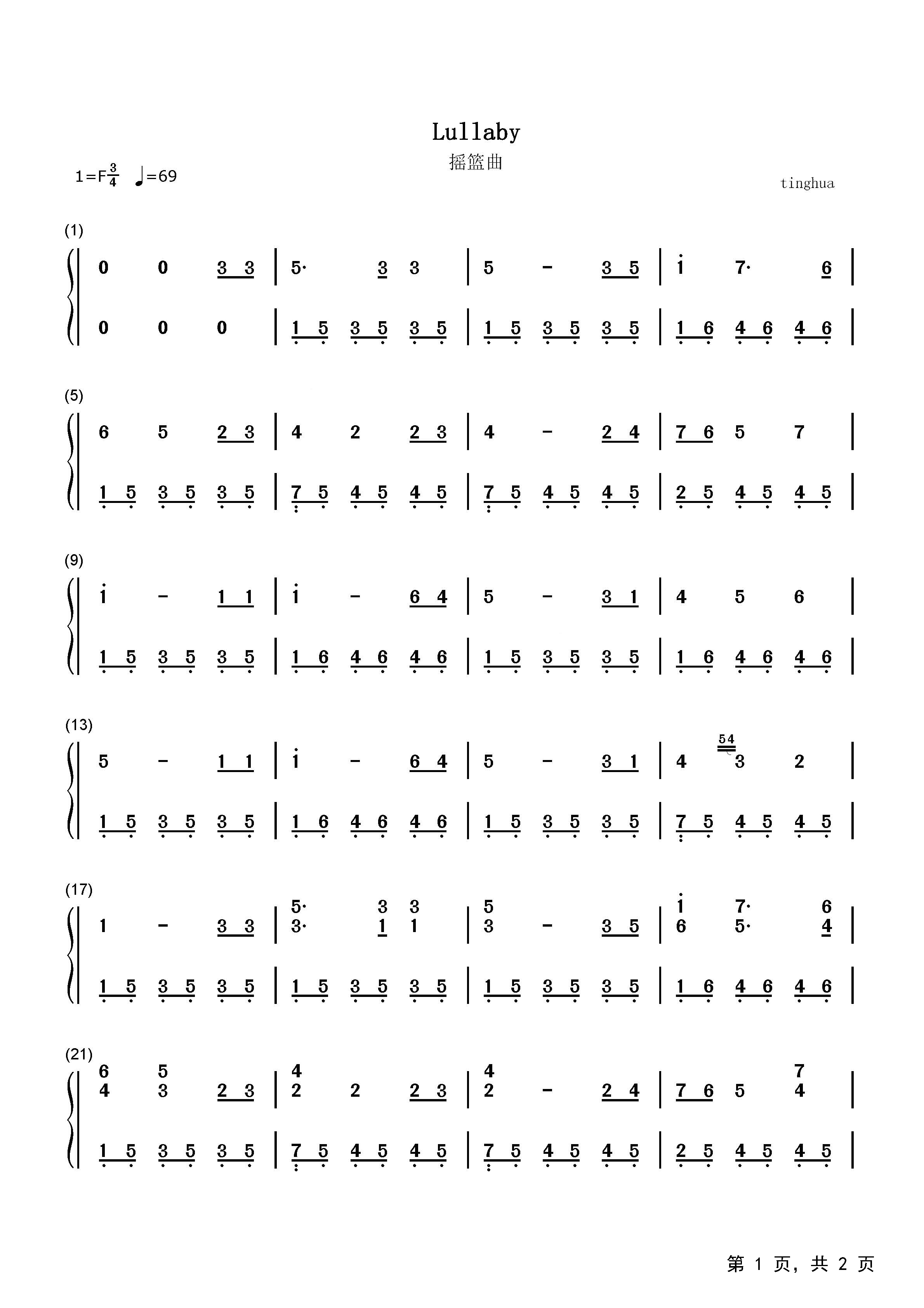 《摇篮曲》这首常用于小提琴独奏的《摇篮曲》,原是一首通俗歌曲,作于1868年。相传作者为祝贺法柏夫人次子的出生,作了这首平易可亲、感情真挚的摇篮曲送给她。法柏夫人是维也纳著名的歌唱家,1859年勃拉姆斯在汉堡时,曾听过她演唱的一首鲍曼的圆舞曲,当时勃拉姆斯深深地被她优美的歌声所感动,后来就利用那首圆舞曲的曲调,加以切分音的变化,作为这首《摇篮曲》的伴奏,仿佛是母亲在轻拍着宝宝入睡。原曲的歌词为“安睡安睡,乖乖在这里睡,小床满插玫瑰,香风吹入萝里,蚊蝇寂无声,宝宝睡得甜蜜,愿你舒舒服服睡到太阳升起。”那恬静、优美的旋律本身就是一首抒情诗。后人曾将这首歌曲改编为轻音乐,在世界上广为流传,就像一首民谣那样深入人心。
