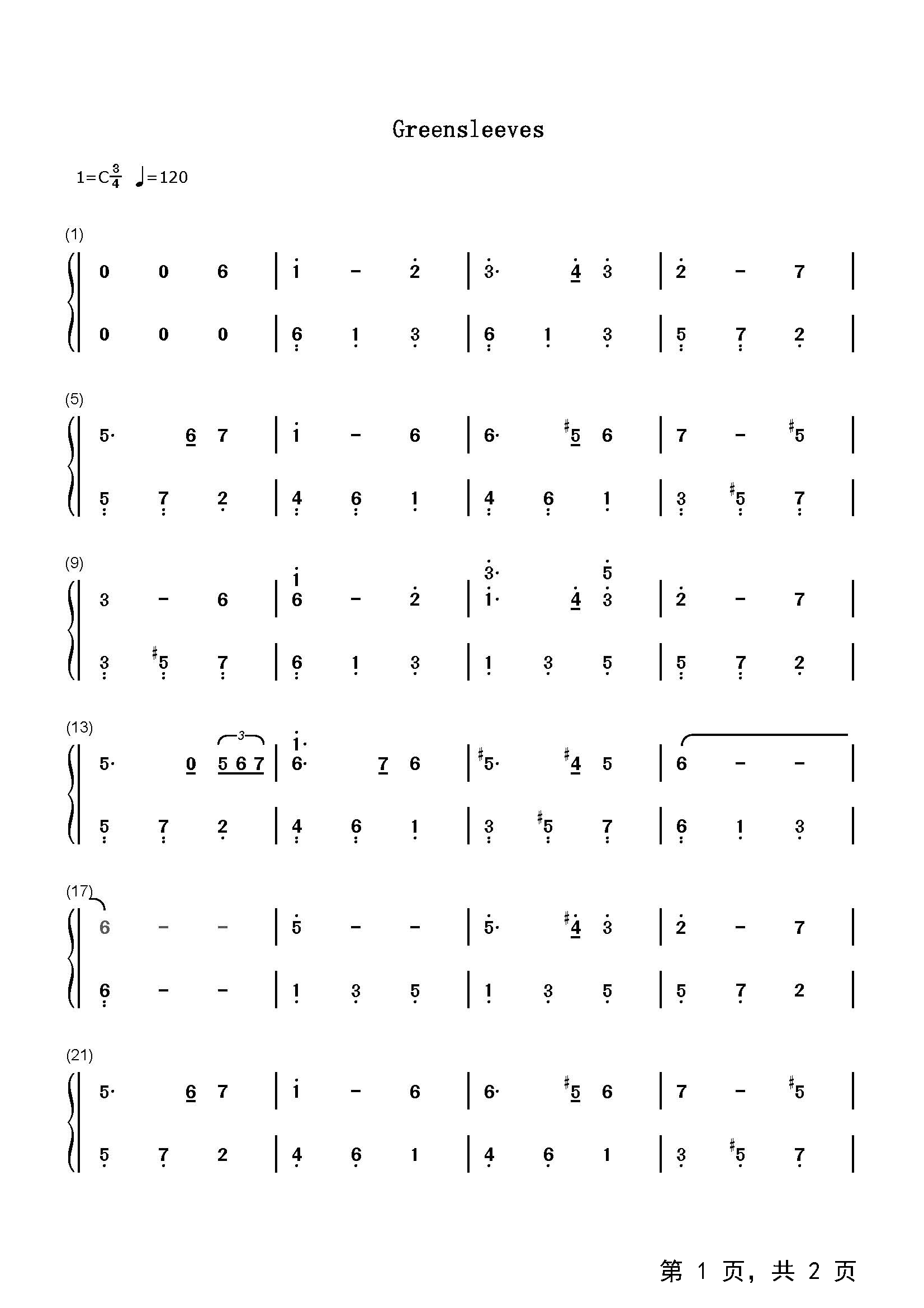 《Greensleeves》,中文为《绿袖子》,是一首英格兰民谣,在16世纪期间开始流行于英格兰民间,属罗曼尼斯卡(Romanesca)系歌曲。,绿袖子是一首英国民谣,在伊丽莎白女王时代就已经广为流传,相传是英王亨利八世所作,他是位长笛演奏家。