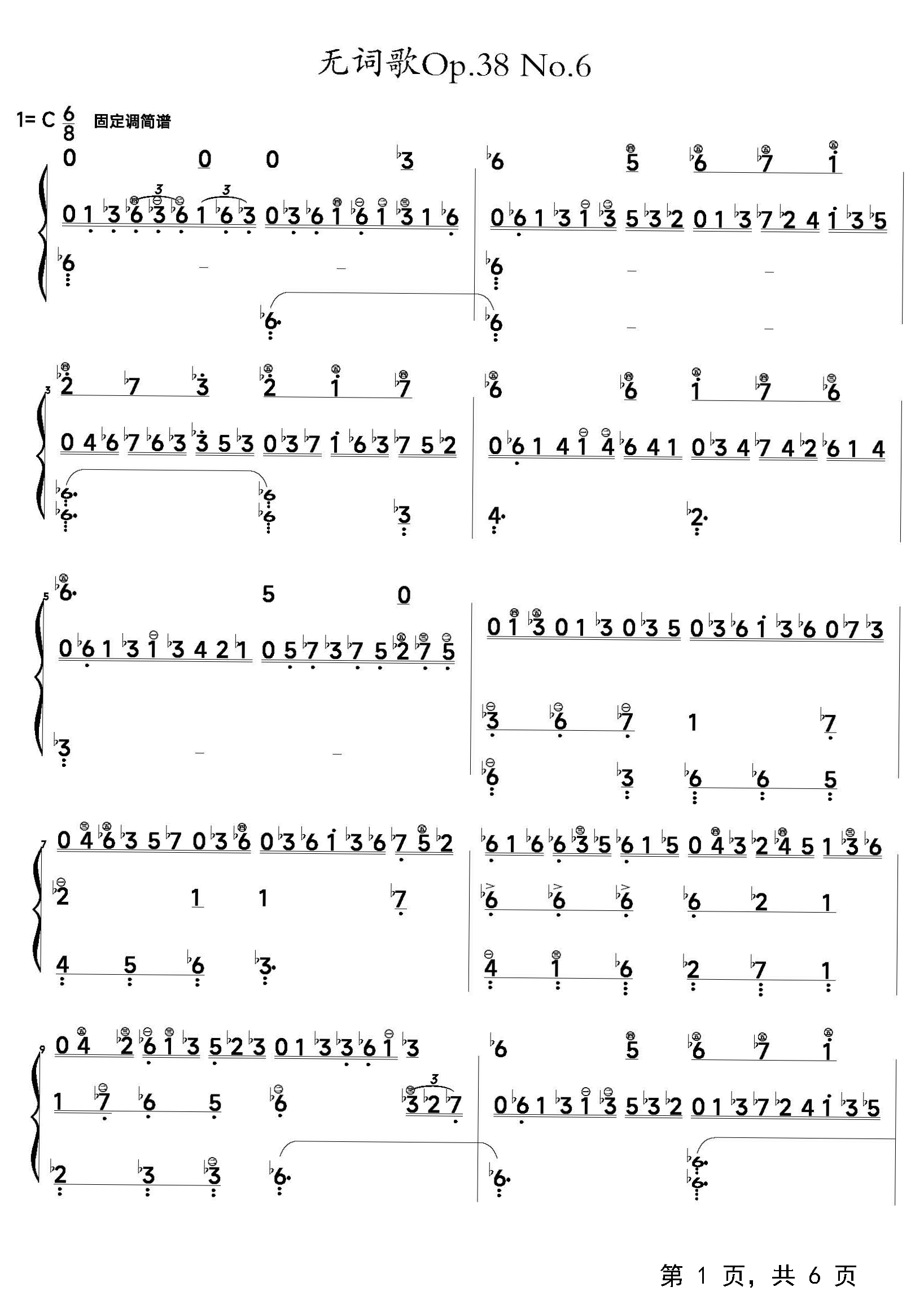 无词歌Op.38 No.6钢琴谱-门德尔松-C调-古典钢琴简谱