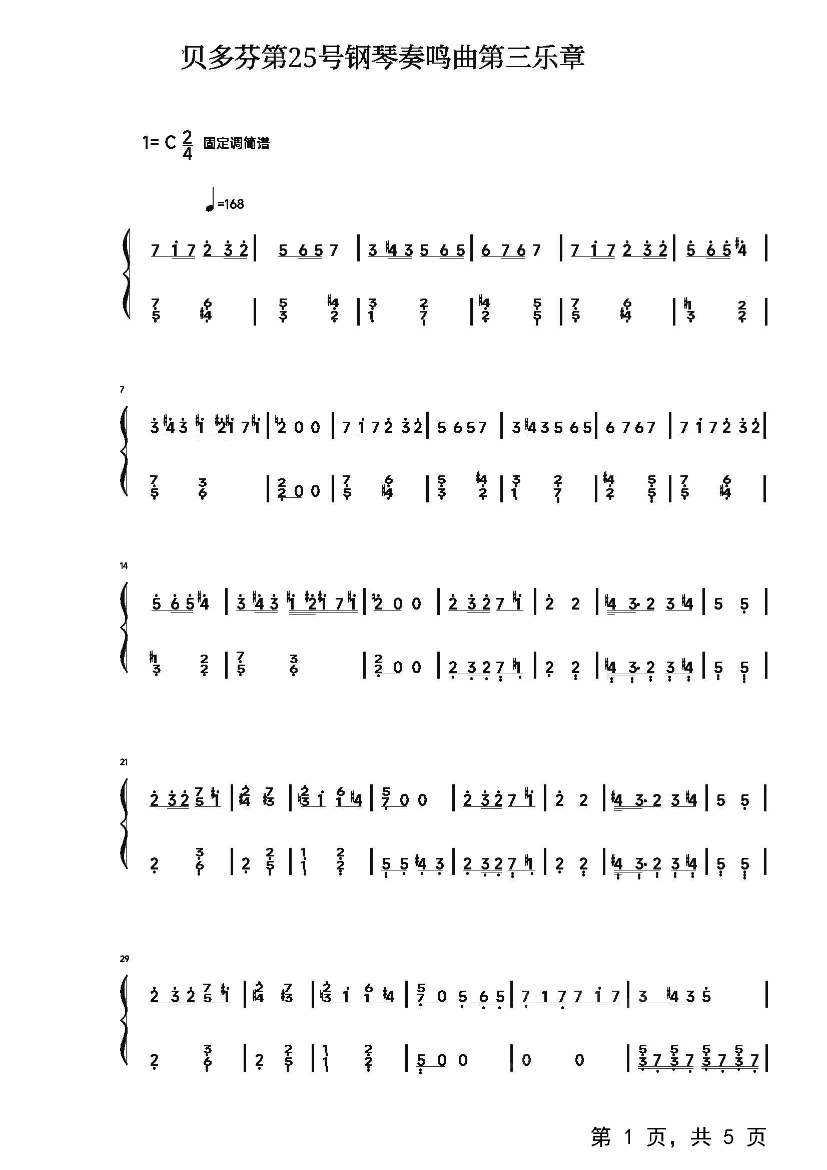 贝多芬第25号钢琴奏鸣曲第三乐章钢琴谱