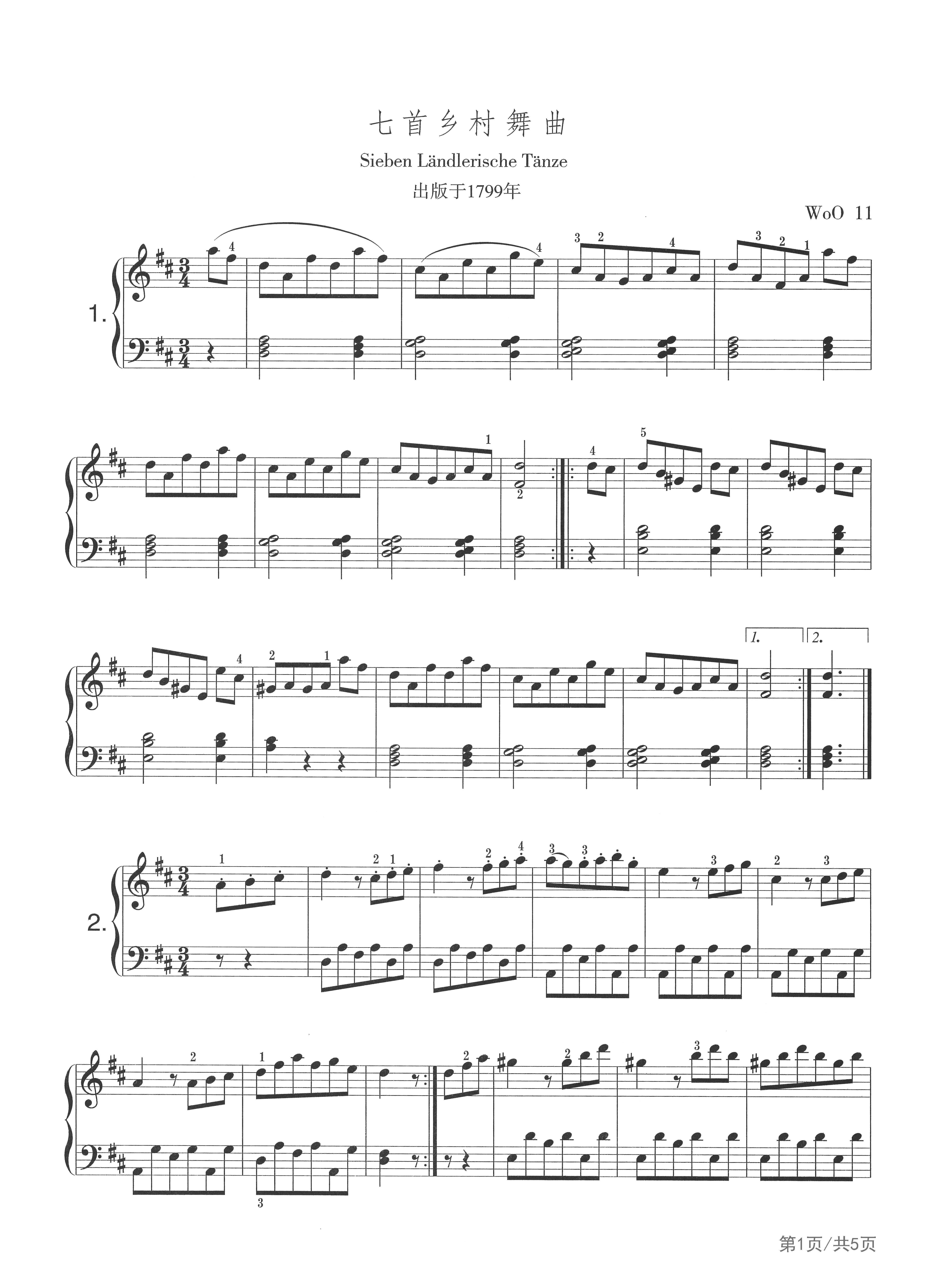作品分类:古典钢琴五线谱