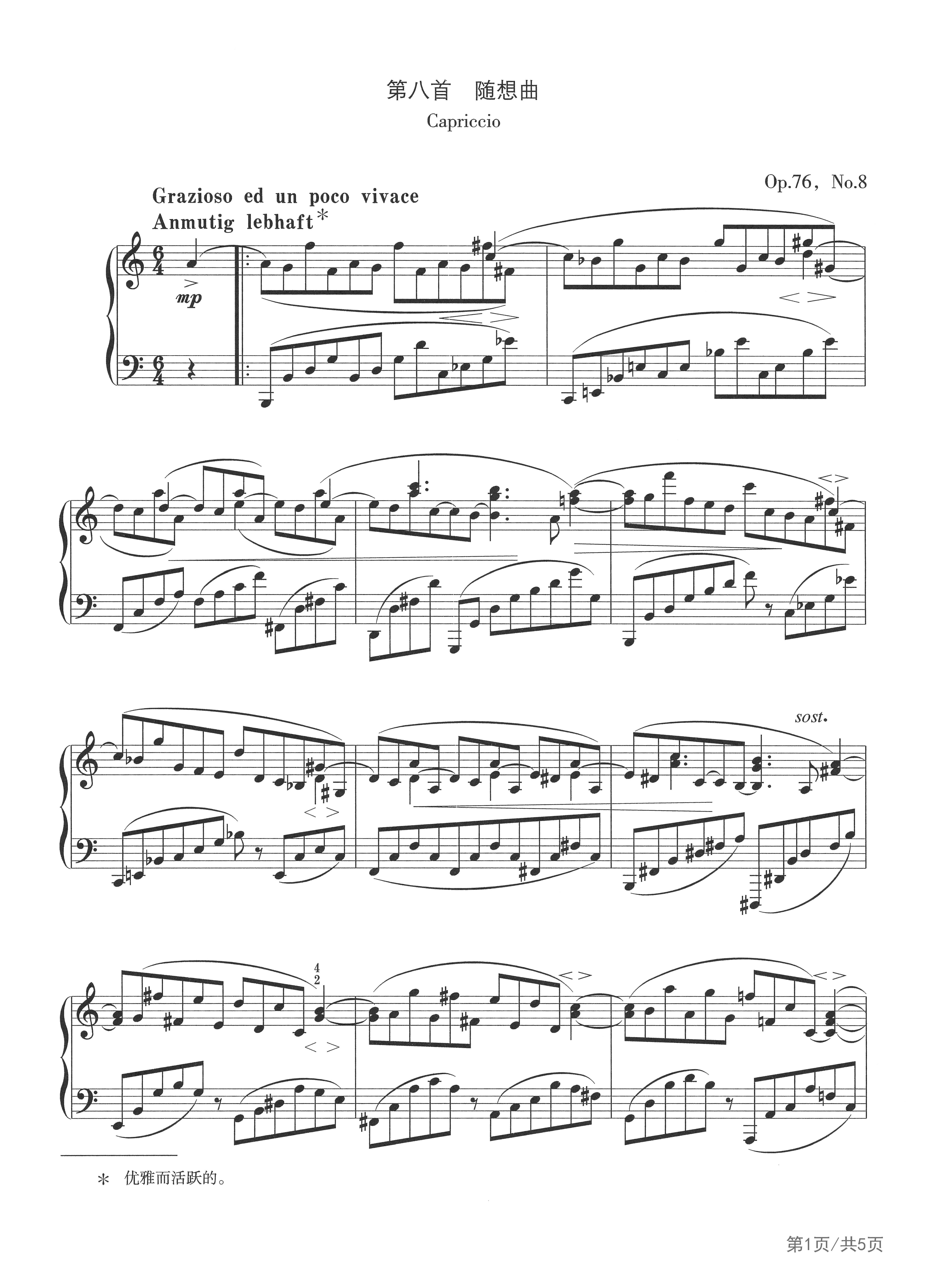 作品分类:古典钢琴五线谱