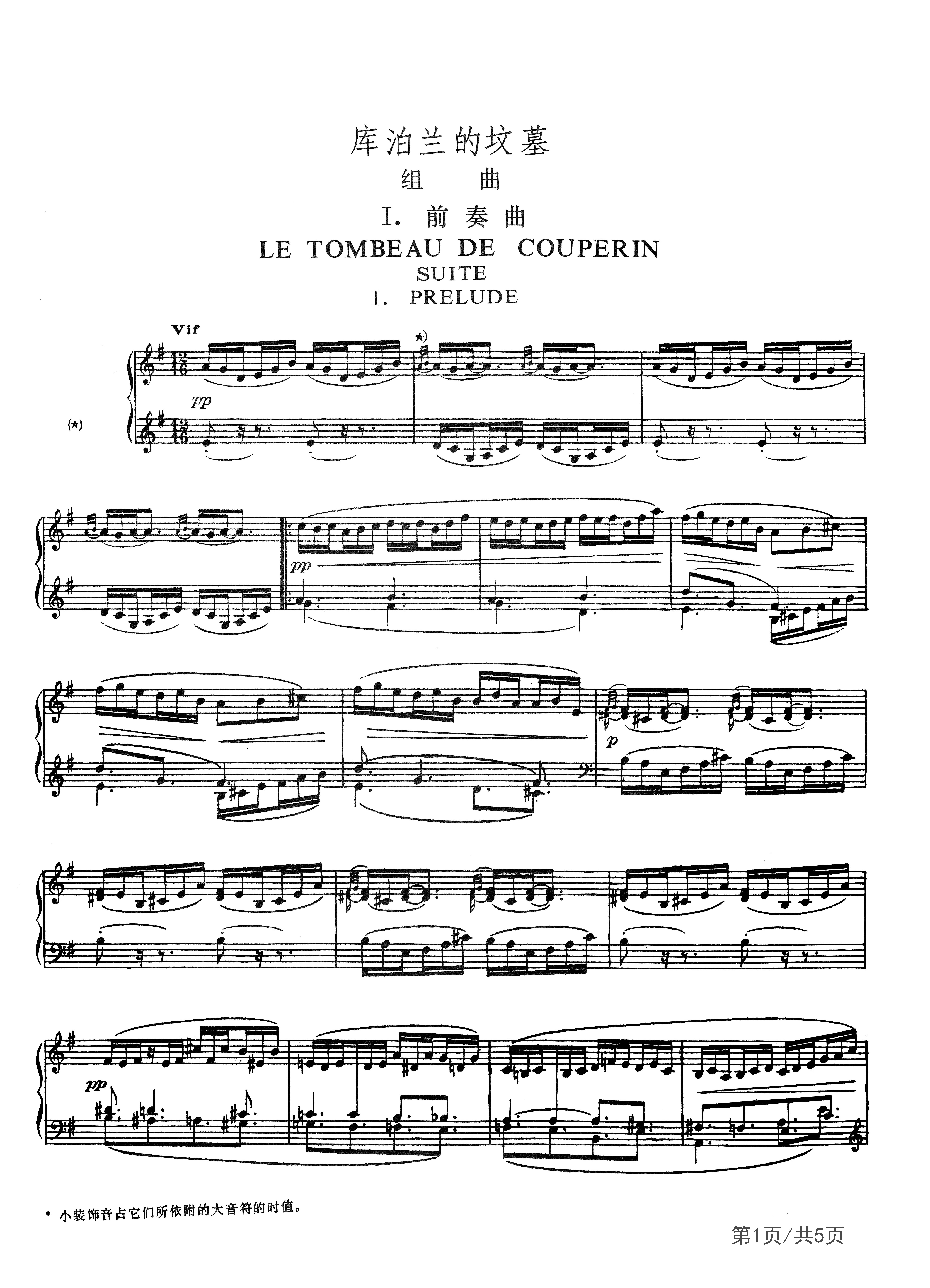 拉威尔-库泊兰的坟墓-前奏曲钢琴谱