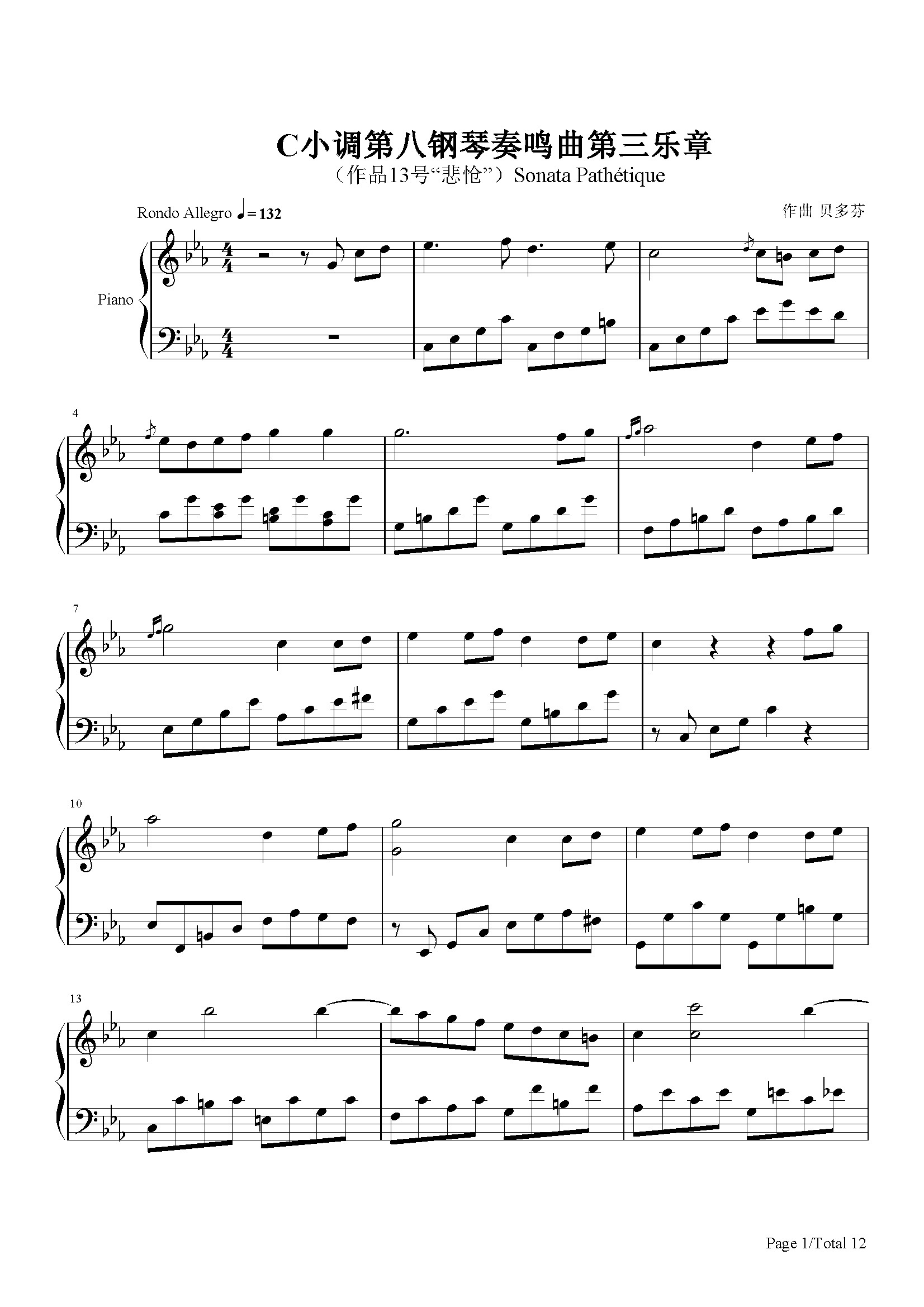 作品分类:古典钢琴五线谱