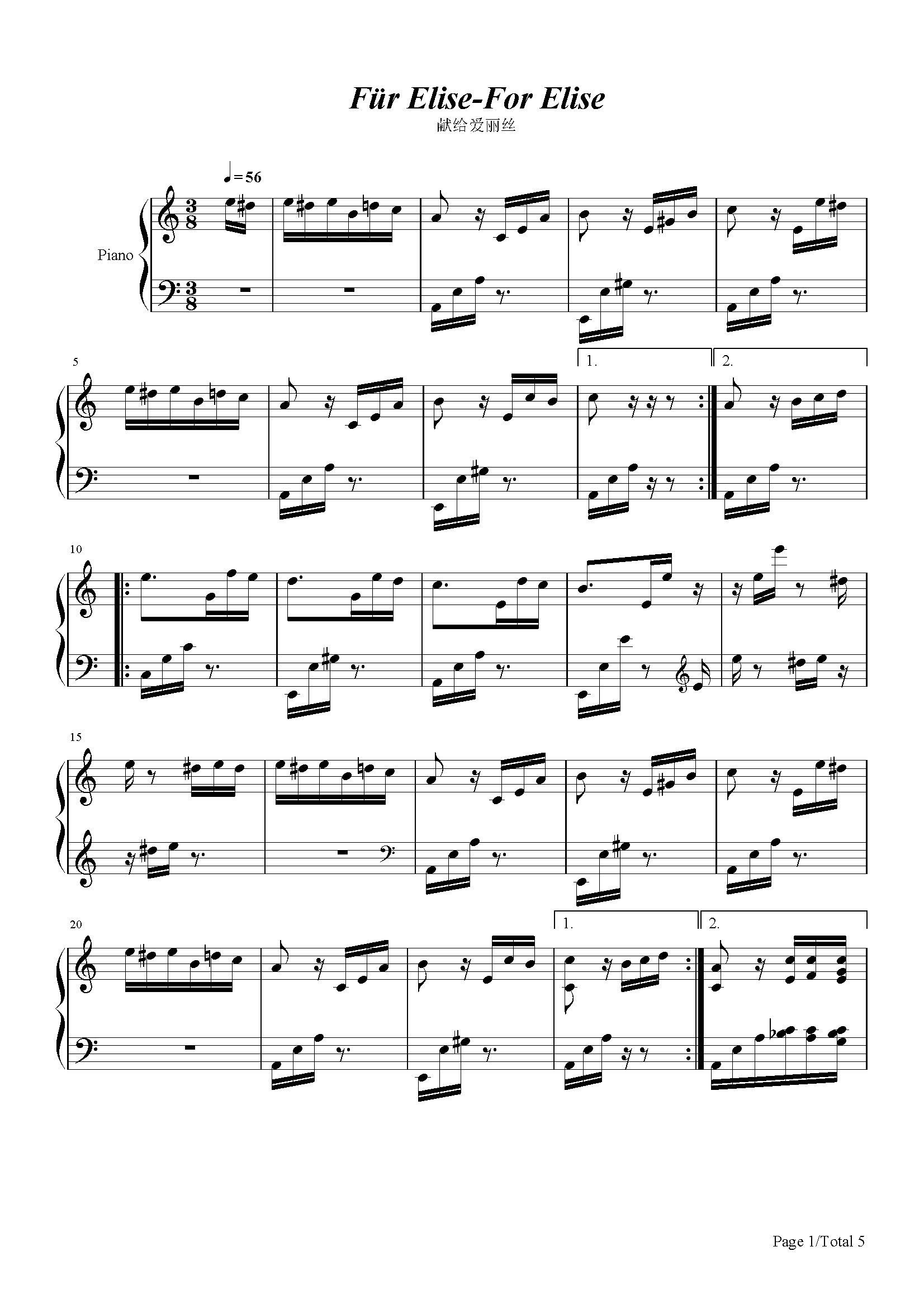 这首曲子的全部是由五个大段组成的。为了能够显得轻柔动人,这首曲子的a段用的,是a小调,然后再从a小调上转到c大调。这样明显的起伏,可以让曲子瞬间的开朗起来。而整首曲子中正是运用了很多这样的技巧,才使得整首曲子听起来非常的有层次和起伏感,而关于贝多芬的这首曲子一直流传着一个非常可爱的故事。据说,在圣诞节的晚上。贝多芬出门游玩,在街头碰到了一个小女孩,这个小女孩的名字就叫做爱丽丝。这个小女孩是一个十分善良的孩子,他希望能够帮助一位双目失明的老人,实现,看一下这个世界的愿望。在当时那个年代,没有发达的医学技术,能够让一个双目失明的人看的到东西,几乎是不可能的,所以爱丽丝的这个愿望也很难达成,但是贝多芬却决定答应这个小女孩,帮她做成这件事情,她跟着小女孩来到了这位老人的身边,弹起了钢琴。随着贝多芬手上跳跃的音符。老人的面前,仿佛可以看到雄壮的山峰,奔涌的海水,飞翔的海鸥。贝多芬竟然真的可以帮老人实现愿望,老人非常激动的感谢贝多芬,贝多芬却说这一切都归功于爱丽丝这个像天使一样的小女孩。