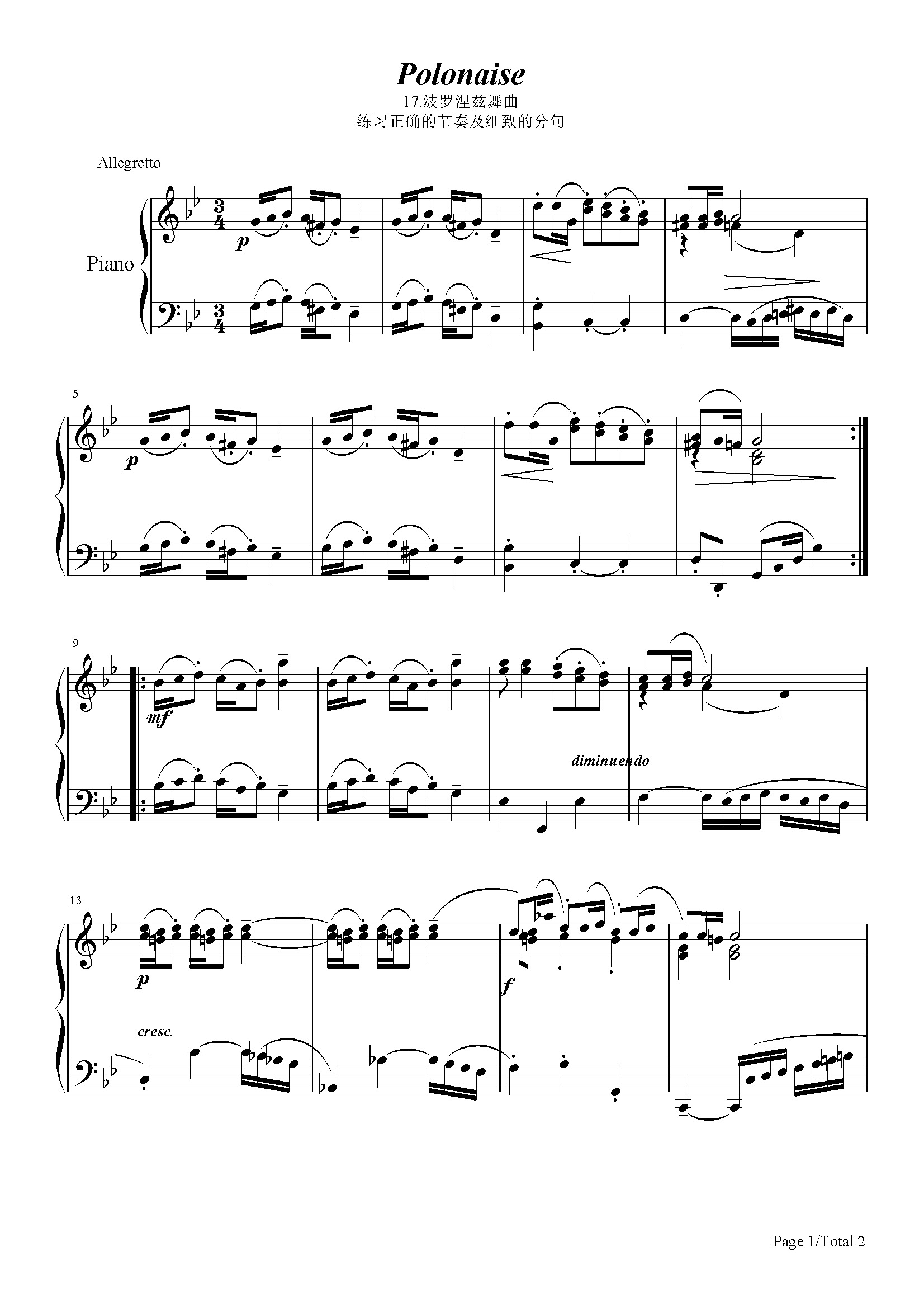 波罗涅兹舞曲-17钢琴谱-巴赫-降B调 -古典钢琴五线谱