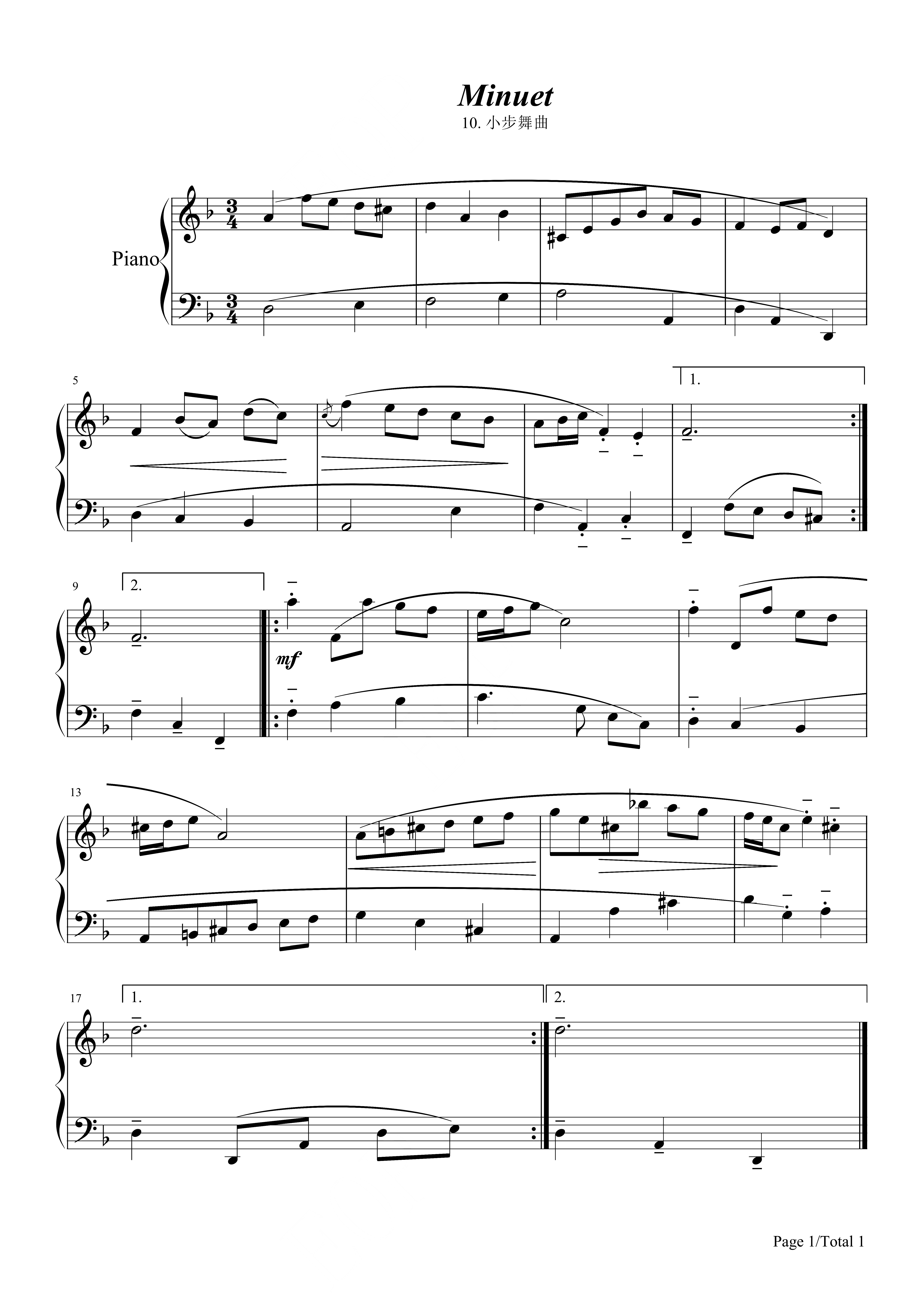 小步舞曲-10钢琴谱-巴赫-F调 -古典钢琴五线谱