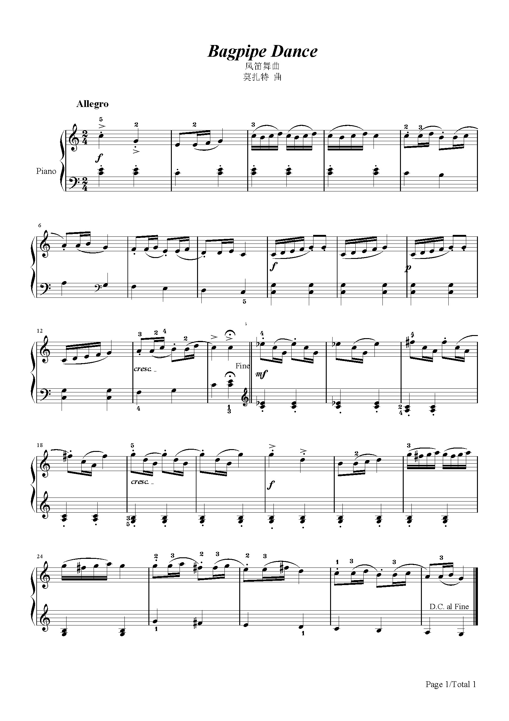 作品分类:古典钢琴五线谱