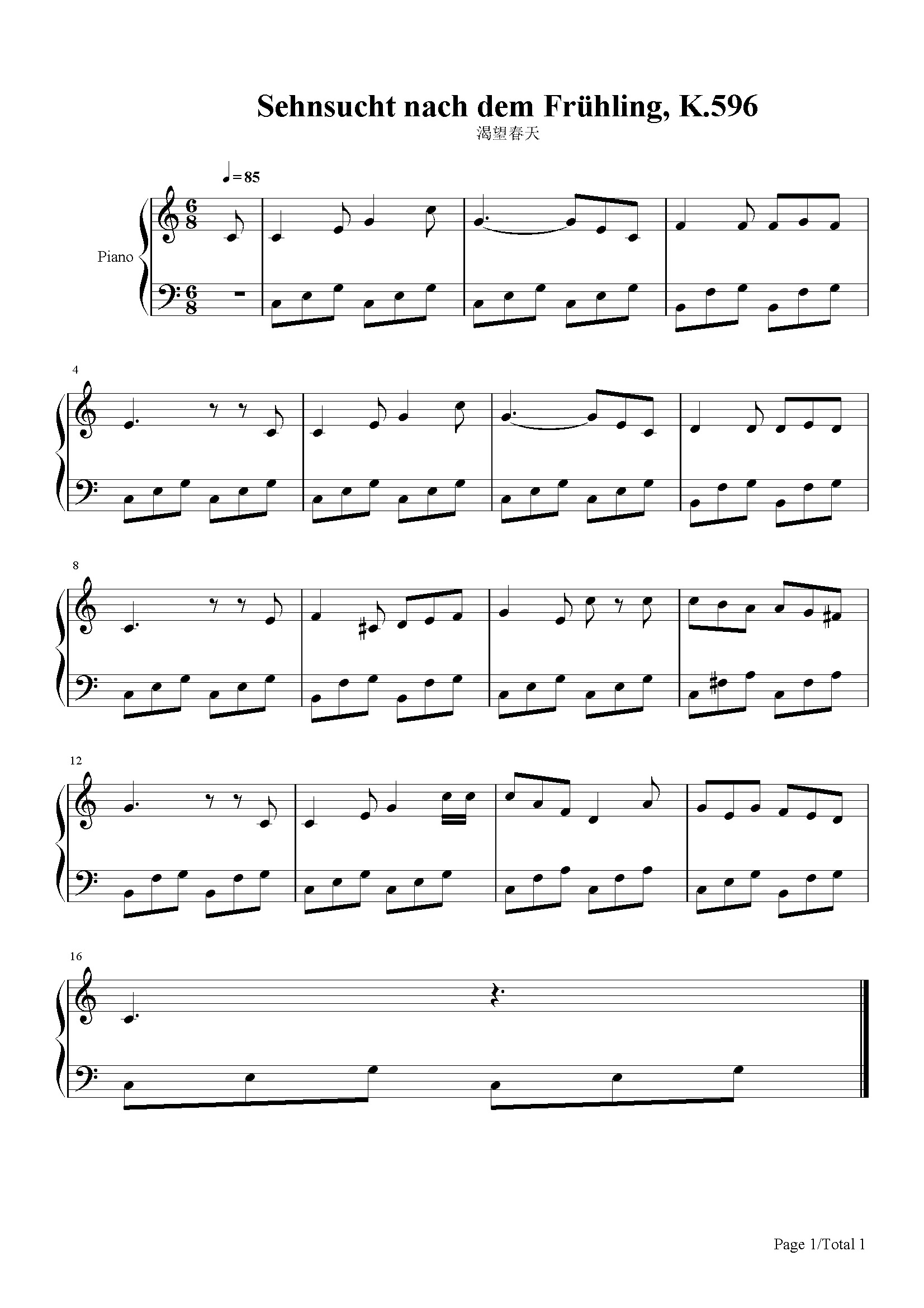 作品分类:古典钢琴五线谱