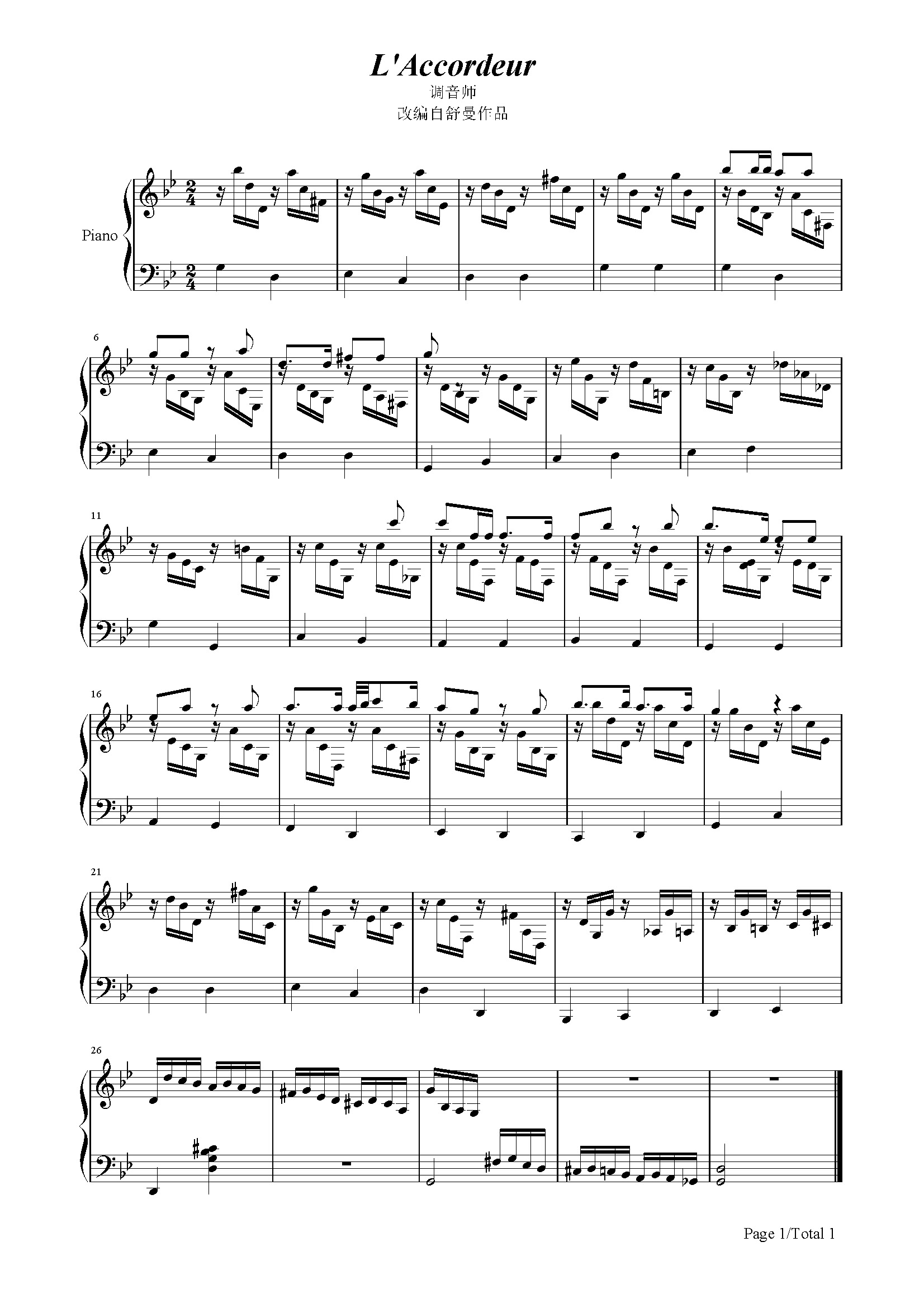 作品分类:古典钢琴五线谱