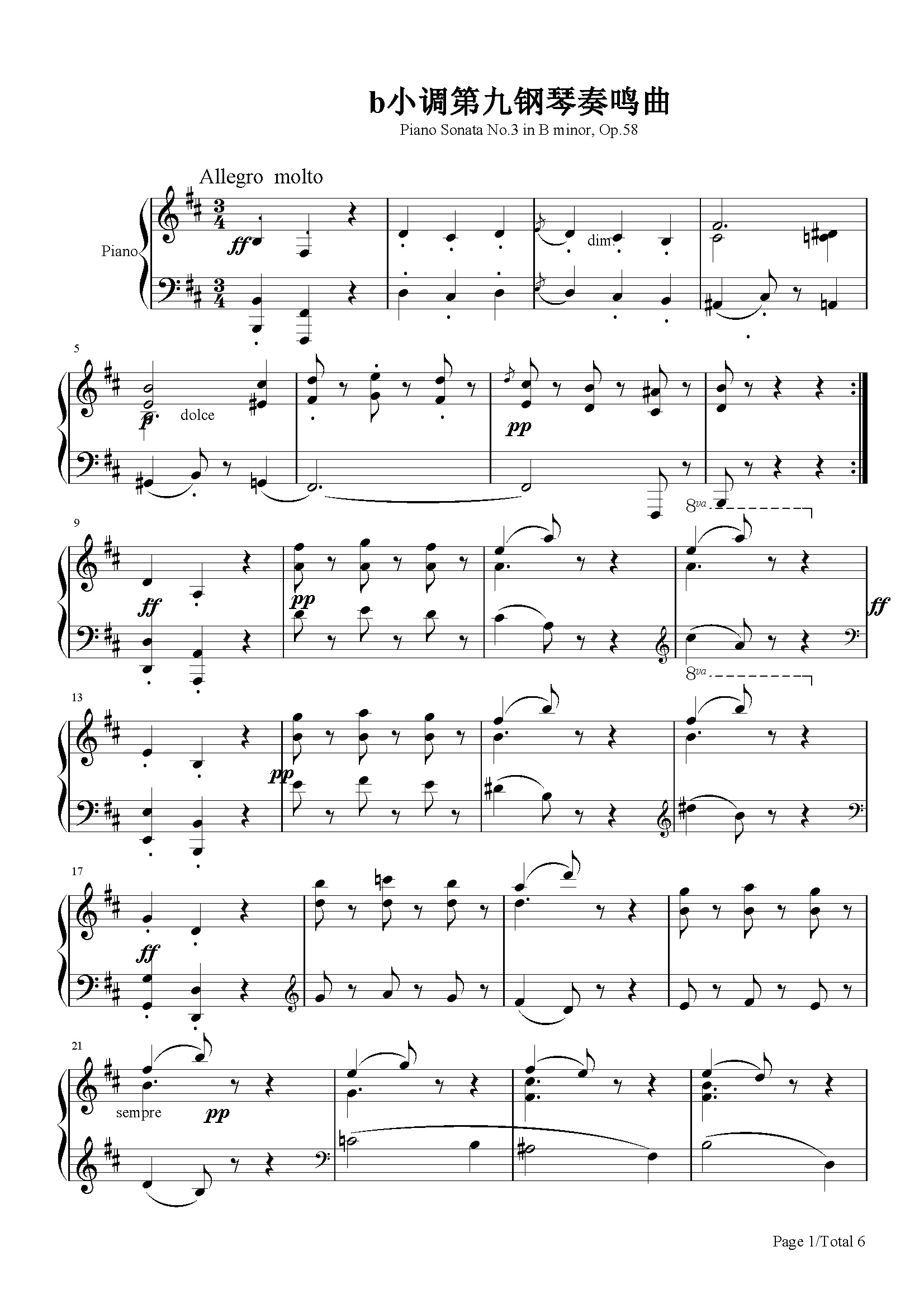作品分类:古典钢琴五线谱