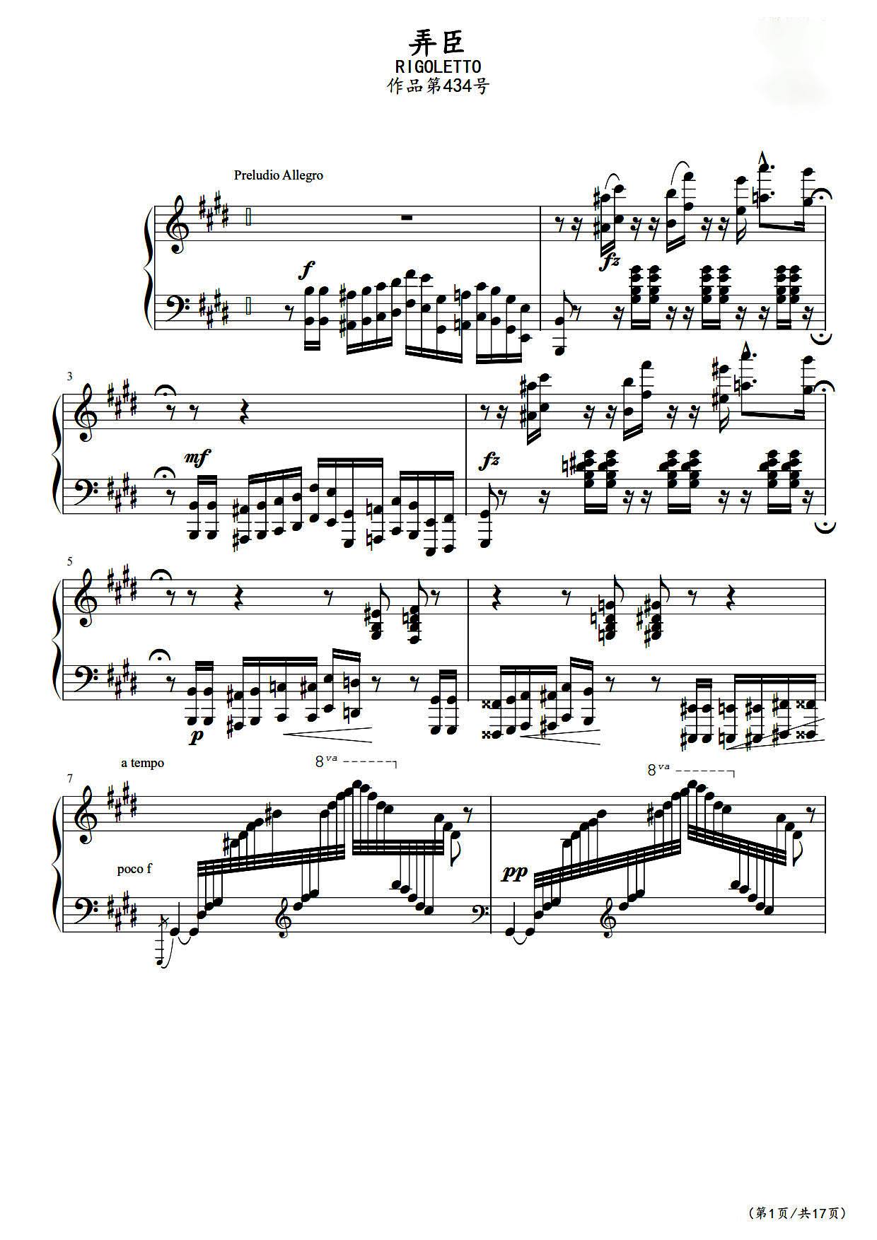 李斯特是欧洲浪漫主义时期伟大的钢琴家、作曲家。他以出神入化的演奏技能、对钢琴演奏技巧的创新、对钢琴潜能的挖掘和创作了大量经典的钢琴作品而在世界钢琴艺术史上占据了不可动摇的地位。钢琴改编曲是李斯特创作中非常重要的一类作品,对钢琴艺术的发展发挥了重要作用。 本文以李斯特钢琴改编曲《弄臣》为研究对象,针对单一作品,在微观层面系统、深入地分析了李斯特改编创作理念、创作风格和创作手法。笔者认为,李斯特改编创作理念是坚持钢琴技巧为音乐服务的基本思想,又追求以展示高难度钢琴技巧、发展钢琴语汇、"钢琴化"处理作品为代表的个性精神,二者互相促进、共同发展,成为李斯特优秀钢琴改编曲的创作源泉。在其创作理念的指导下,李斯特在改编曲《弄臣》中充分展示了自己的创作风格和手法。在炫技方面,李斯特始终注意在把握原作精神的基础上炫技,达到了技巧性和艺术性的完美结合。通过声乐原作钢琴化,钢琴演奏交响化,用钢琴完美地演绎了歌剧《弄臣》中最为精彩的片段,充分展示了钢琴艺术的魅力。
