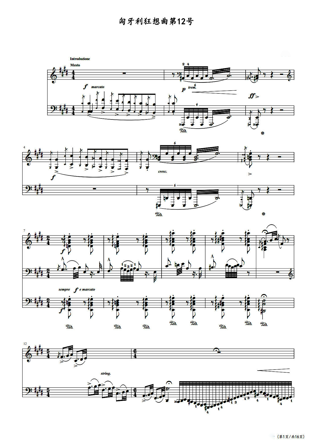 作品分类:古典钢琴五线谱