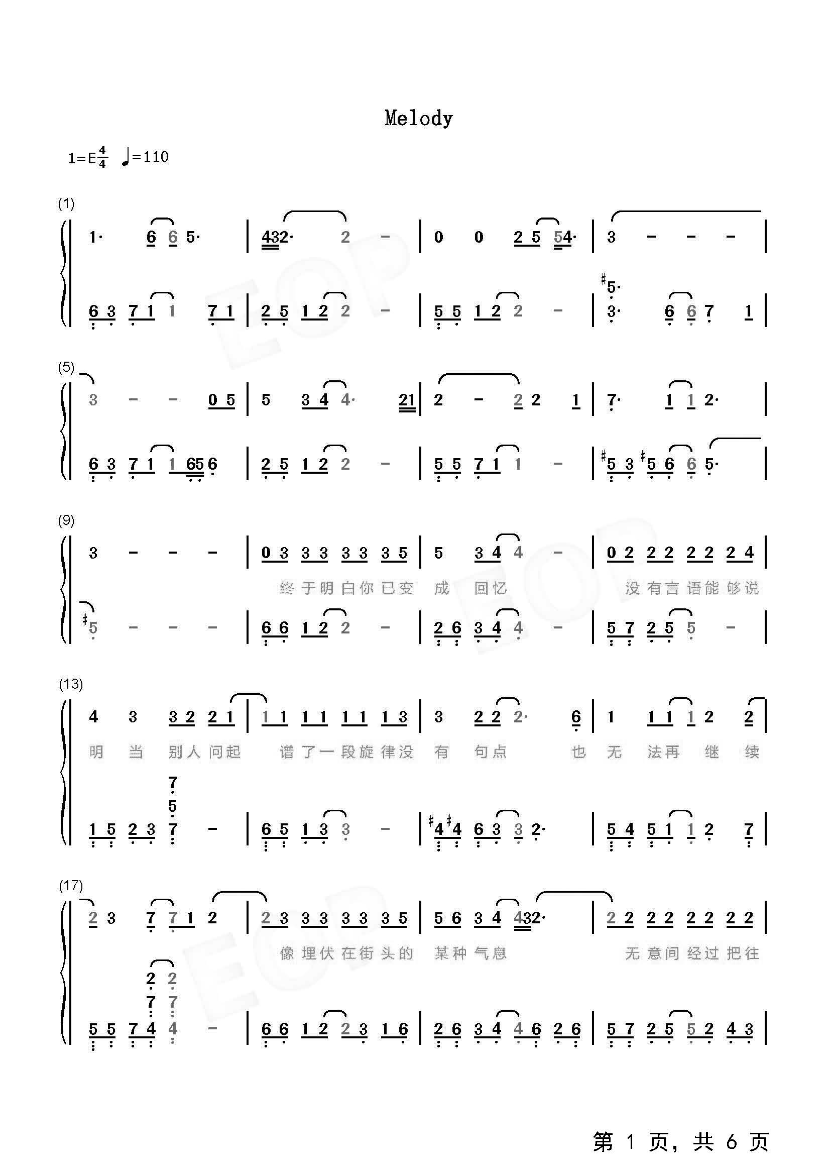 作品曲调:E调
