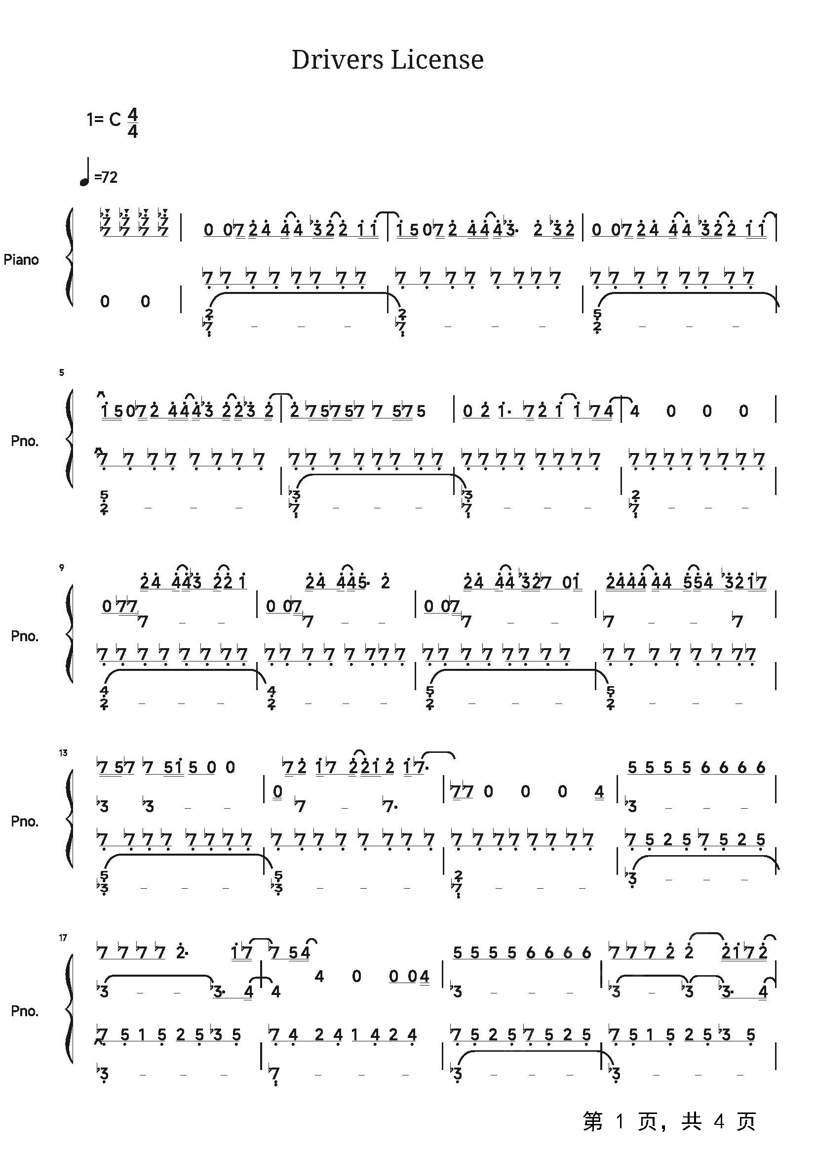 作品曲调:C调
