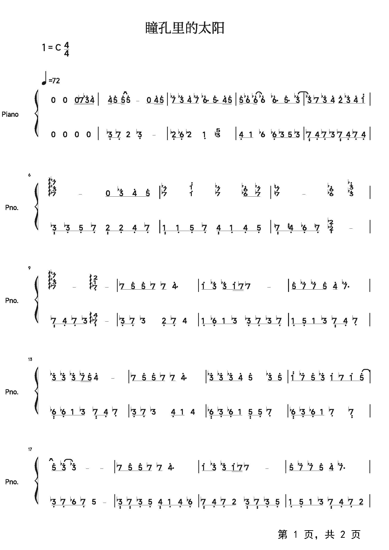 作品分类:钢琴简谱