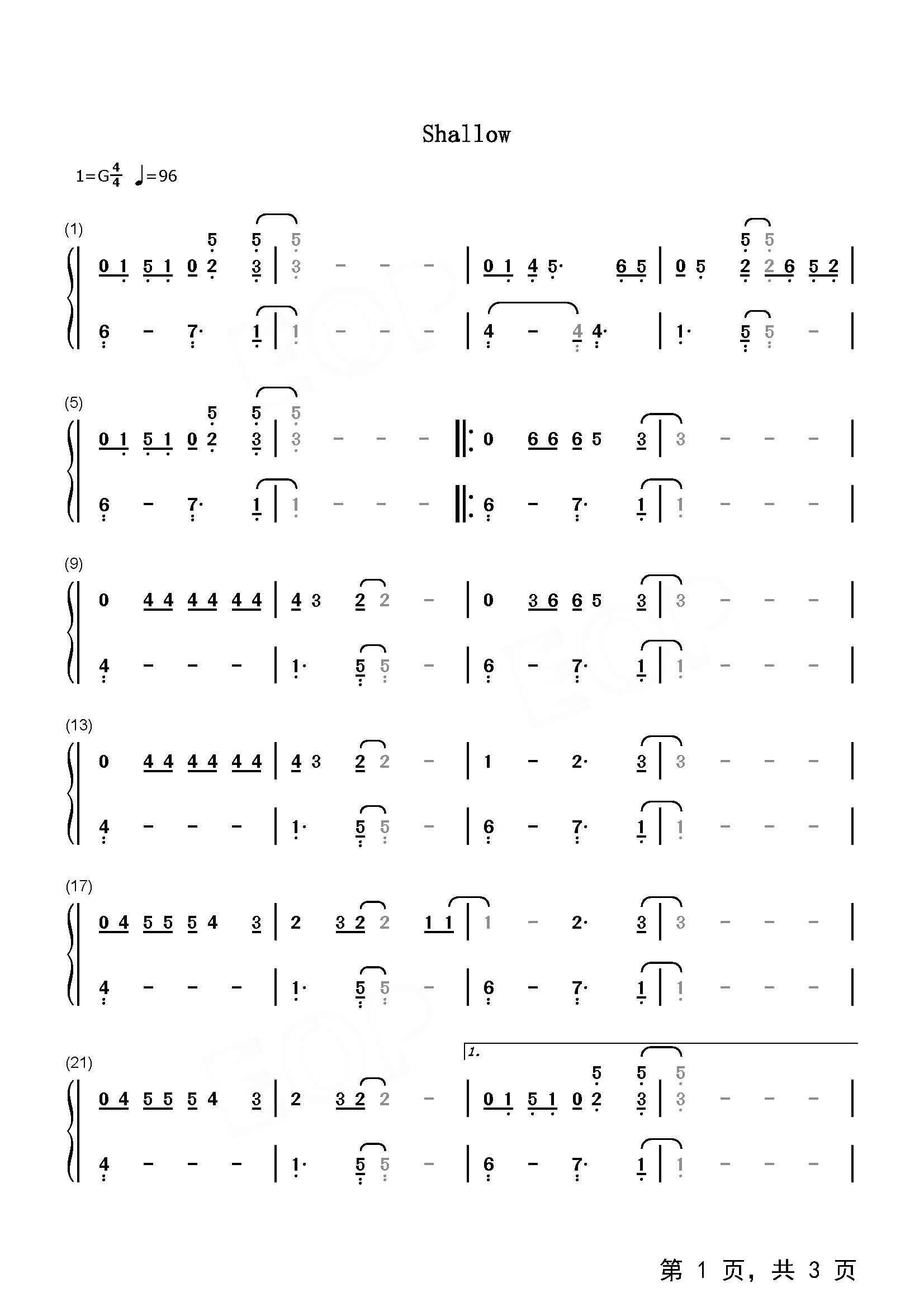 《Shallow》,中文译为《浅滩》,是2018年电影《一个明星的诞生》同名原声带的首张单曲,由Lady Gaga与Bradley Cooper演唱。单曲获得多数评论家的正面评价,大多赞扬嘎嘎的歌声、戏剧性曲风和词曲,同时认为其值得获多个奖项提名。《Shallow》在发布后随即空降十多个国家歌曲排行榜的榜首,包括四个欧洲国家和进入八个国家排行榜的前五。此外,单曲还赢得第76届金球奖最佳原创歌曲和第91届奥斯卡金像奖最佳原创歌曲,并得到第61届格莱美奖的四项提名,拿下最佳流行组合与最佳影视媒体作品歌曲等两座奖项。