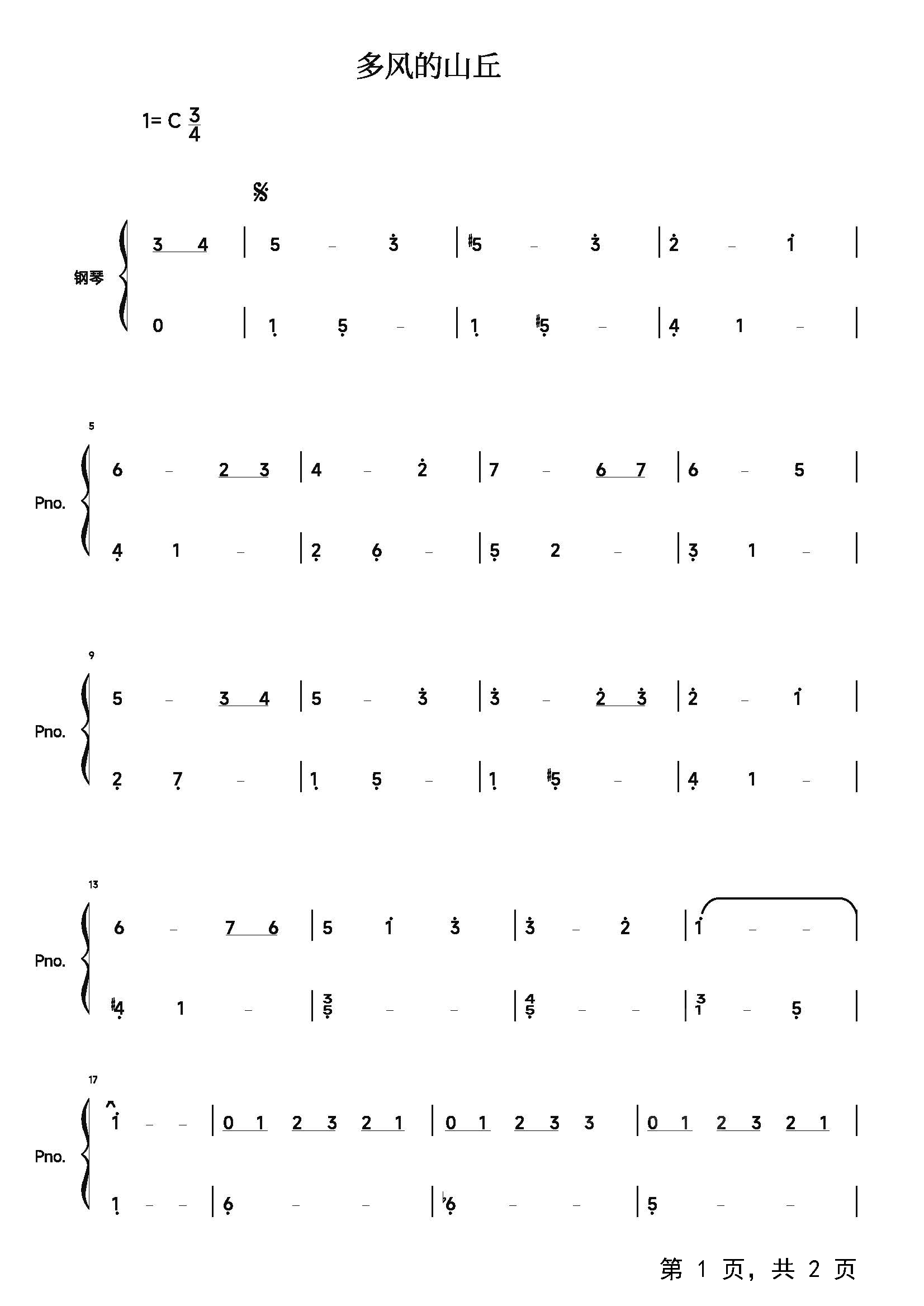 作品分类:钢琴简谱