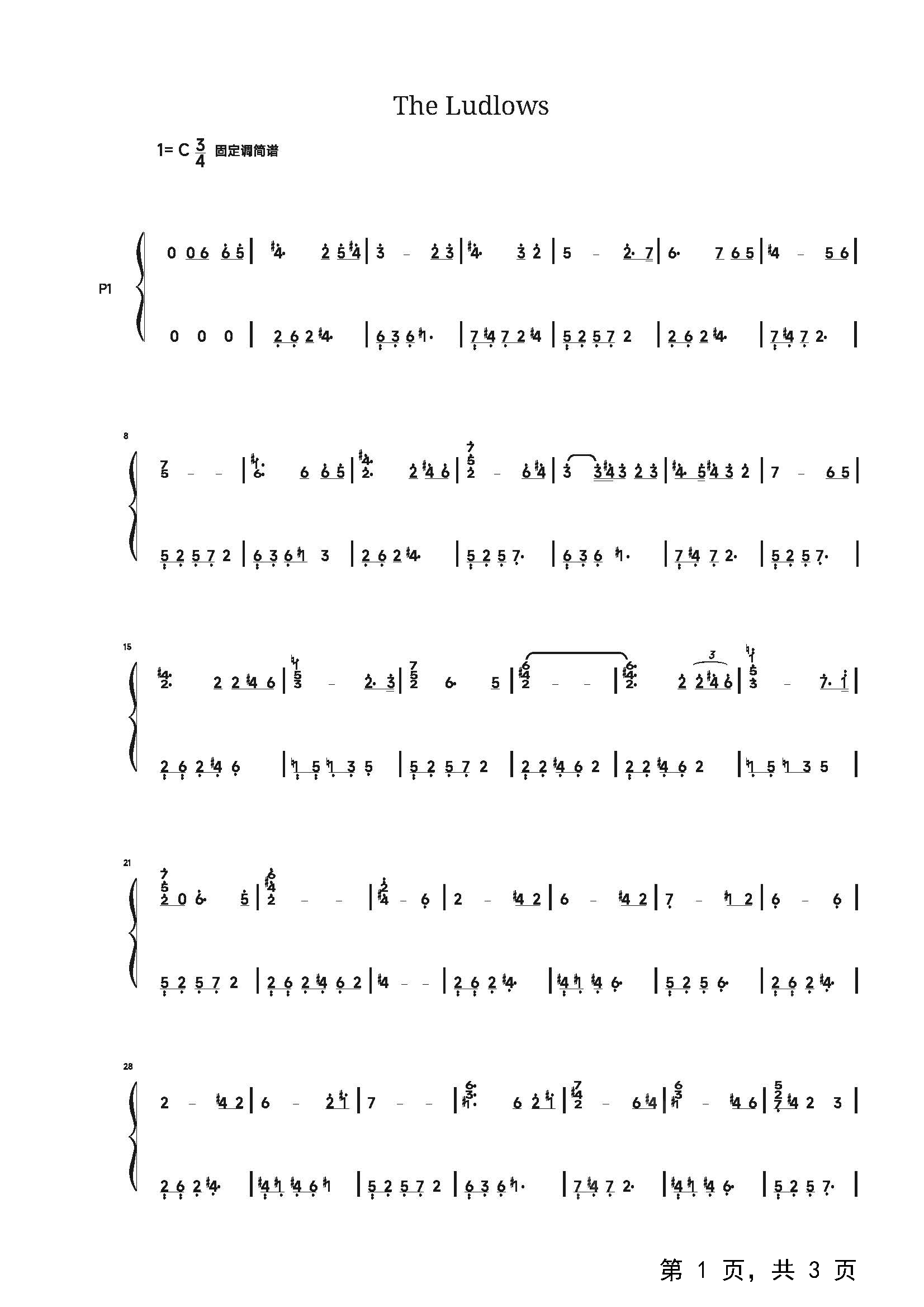 作品分类:钢琴简谱