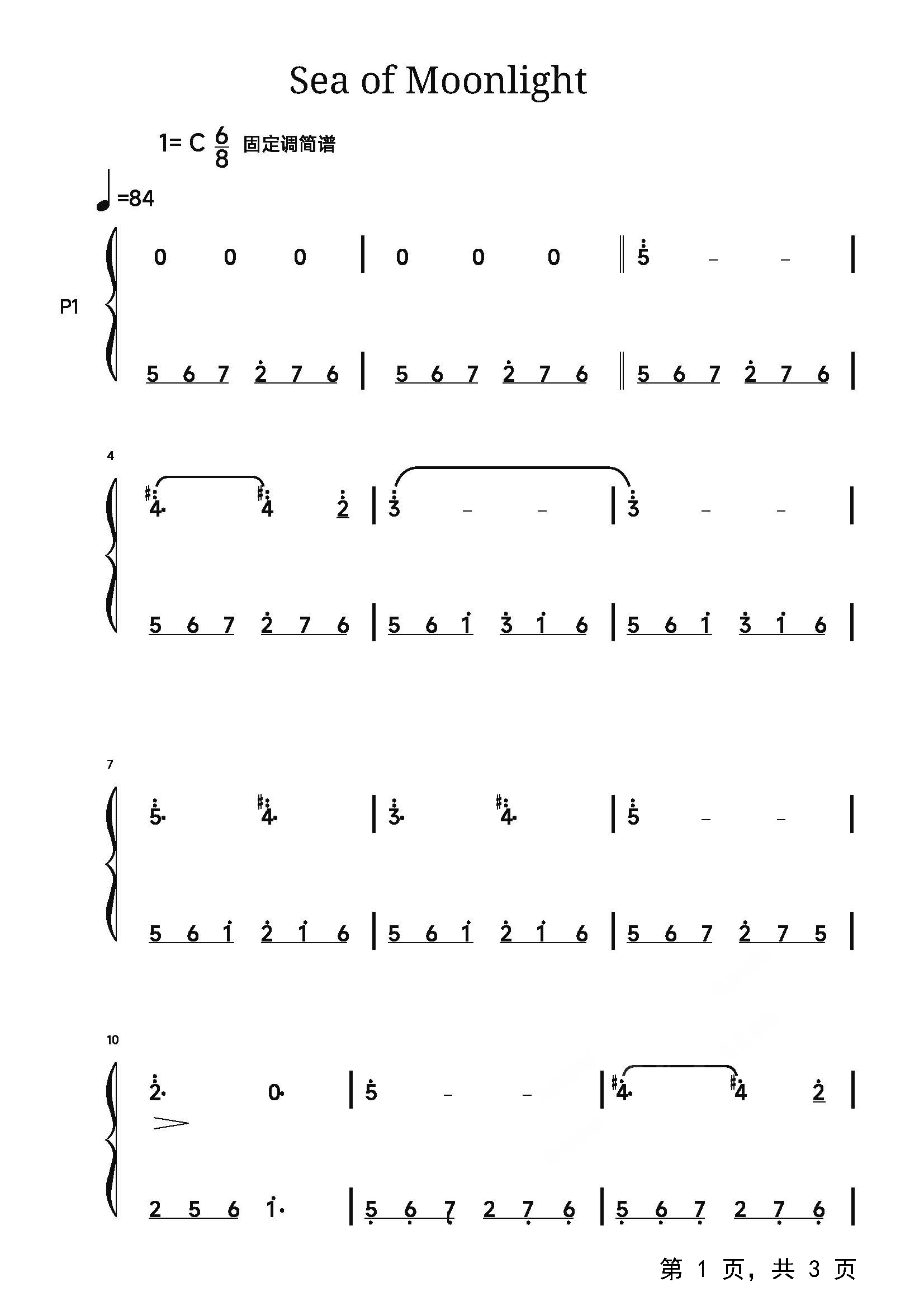 作品分类:钢琴简谱