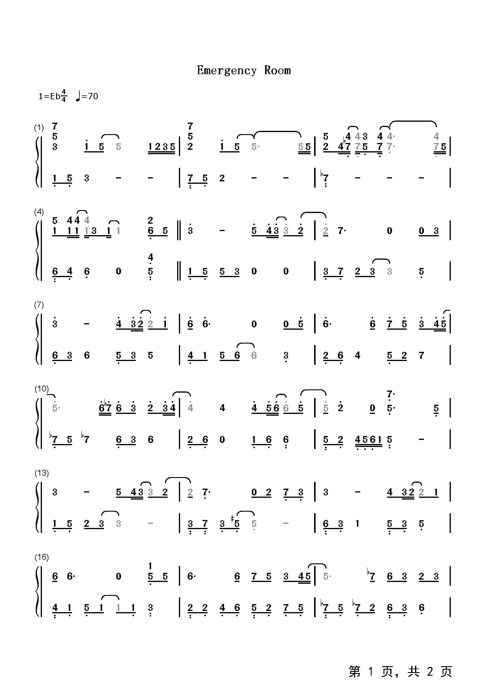 作品分类:钢琴简谱
