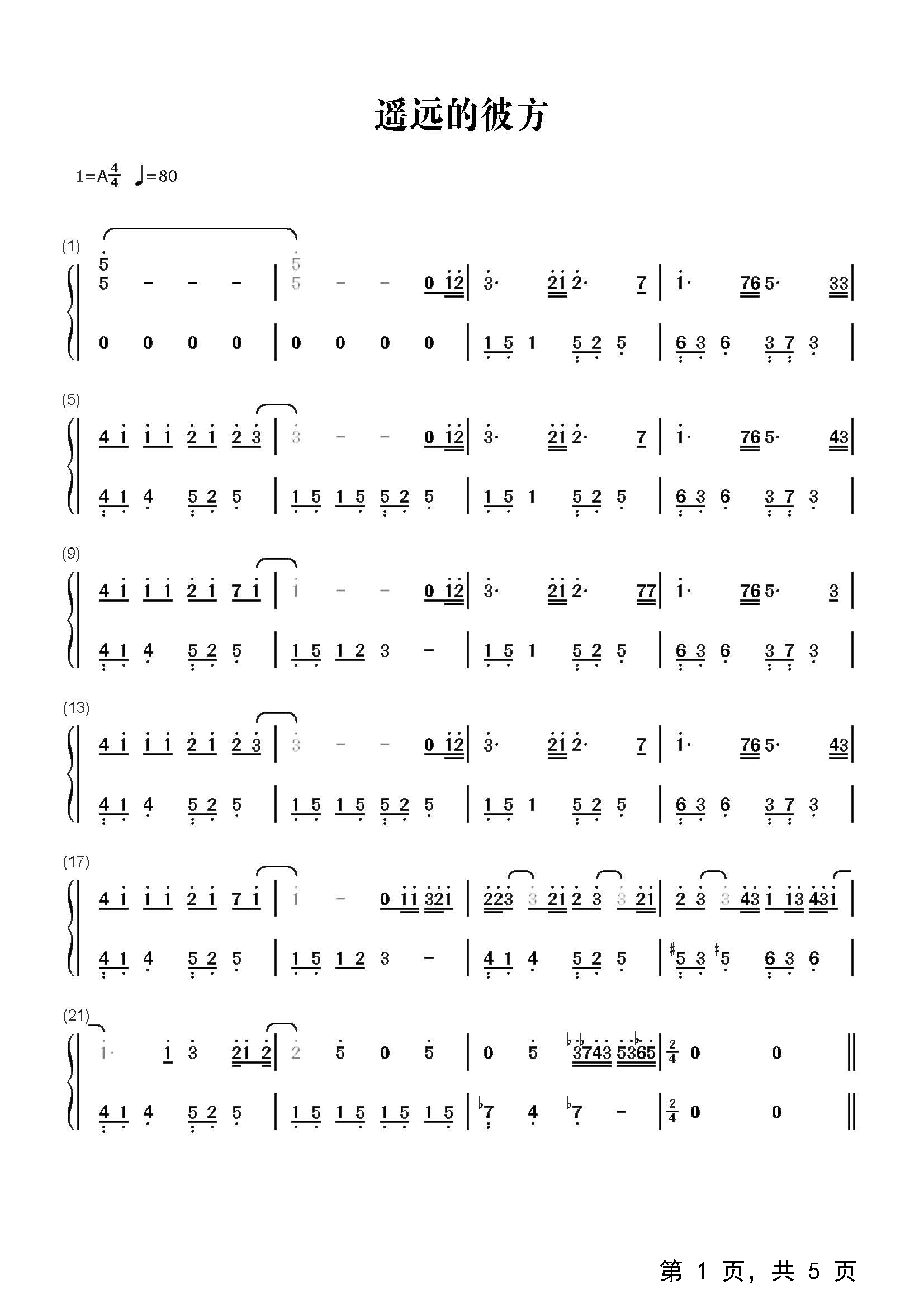 作品分类:钢琴简谱