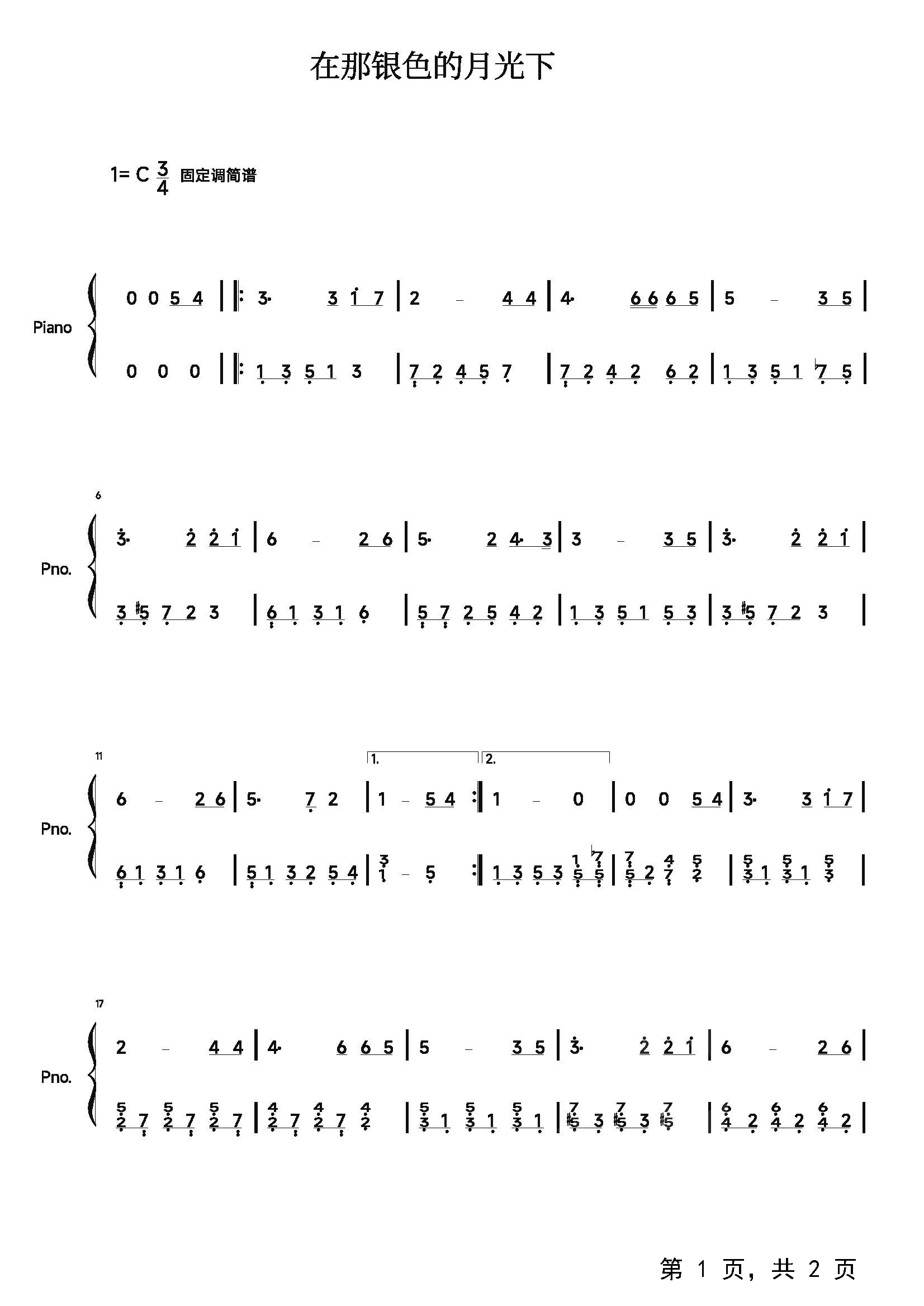 作品分类:钢琴简谱