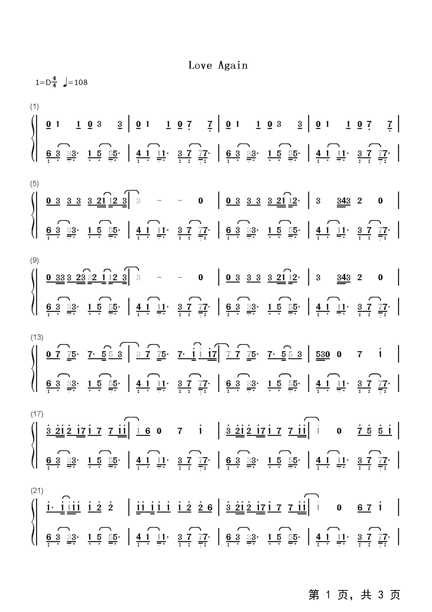 作品分类:钢琴简谱