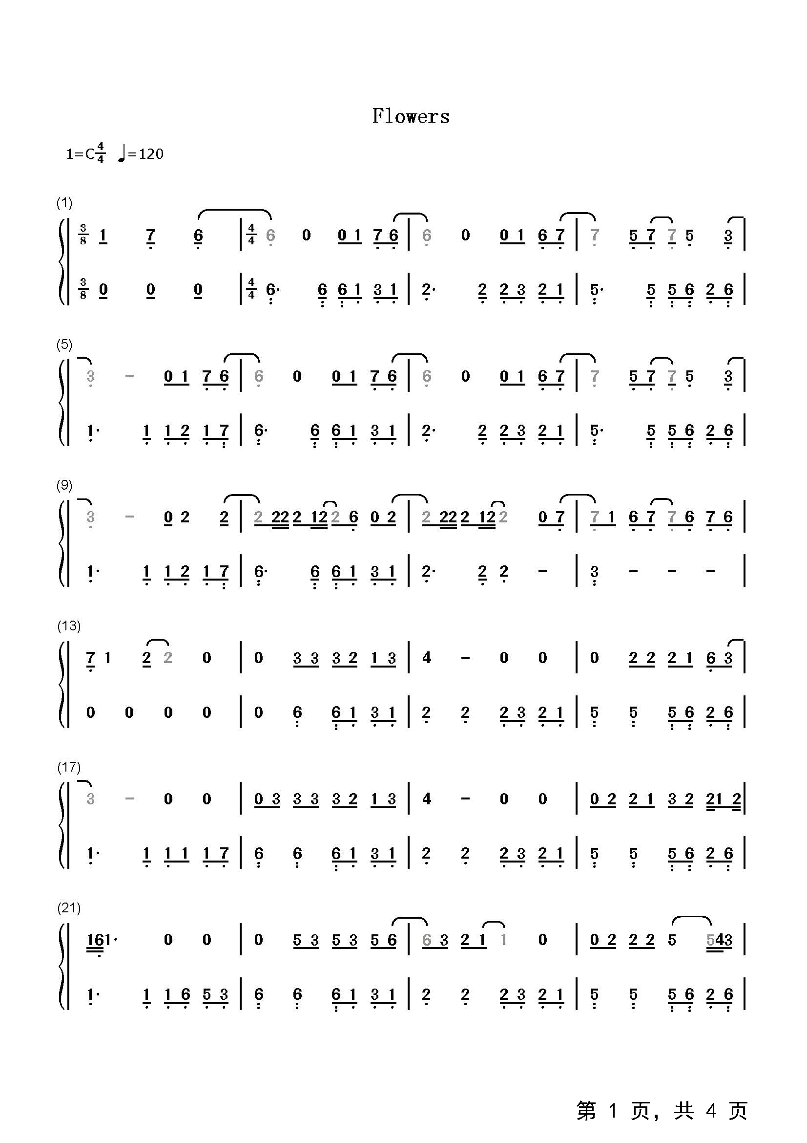 作品分类:钢琴简谱