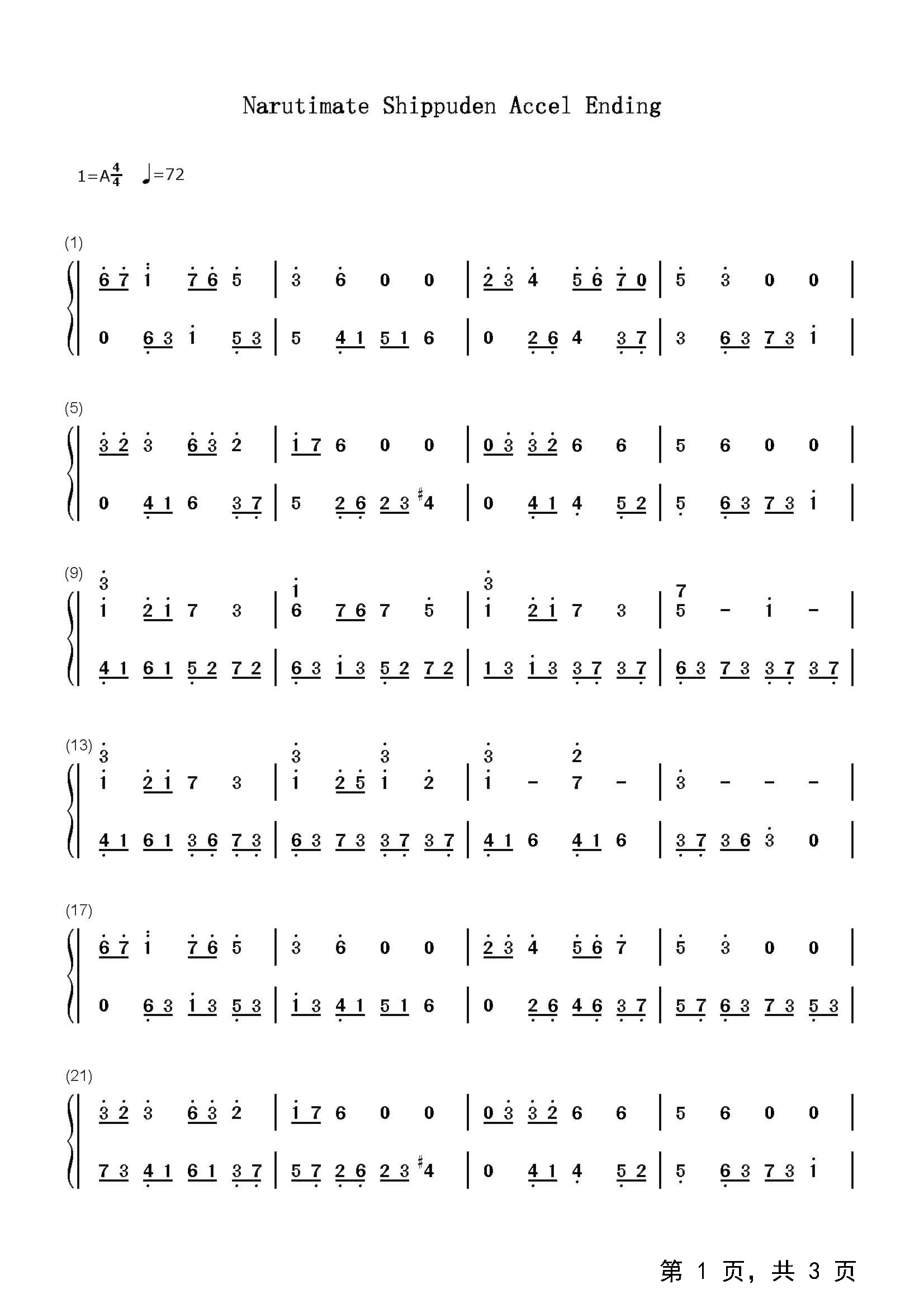 作品分类:钢琴简谱