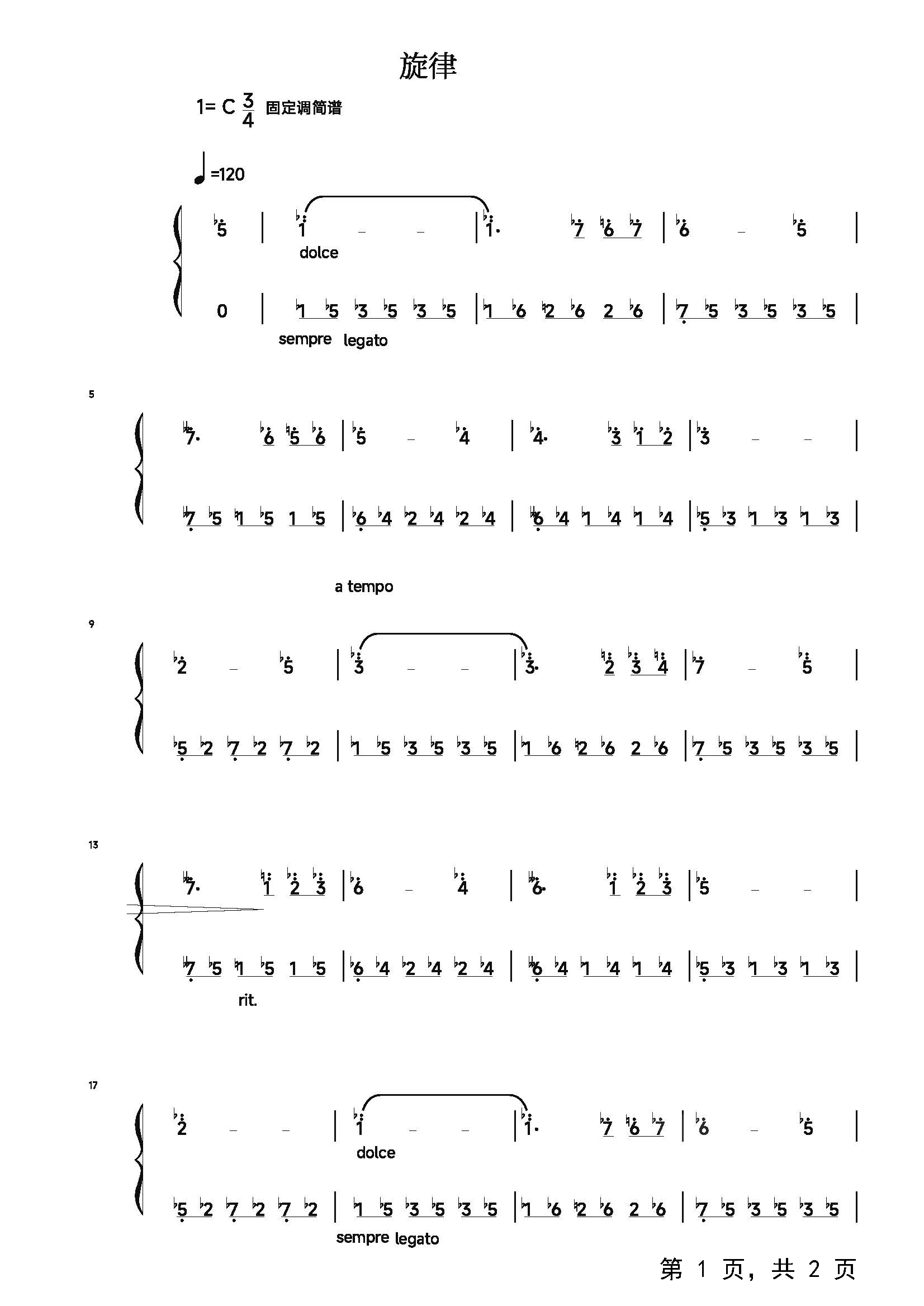 作品分类:钢琴简谱