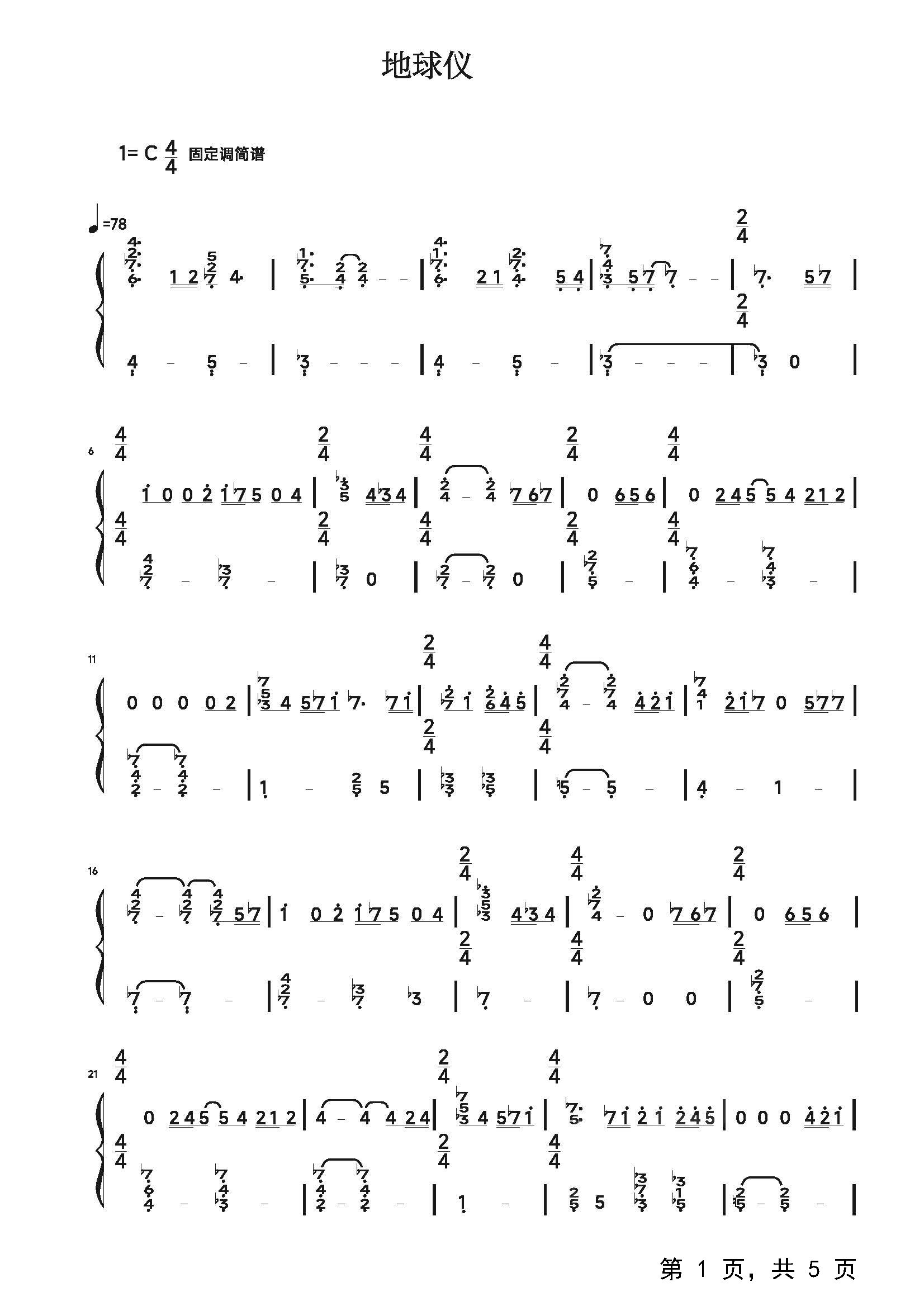作品分类:钢琴简谱
