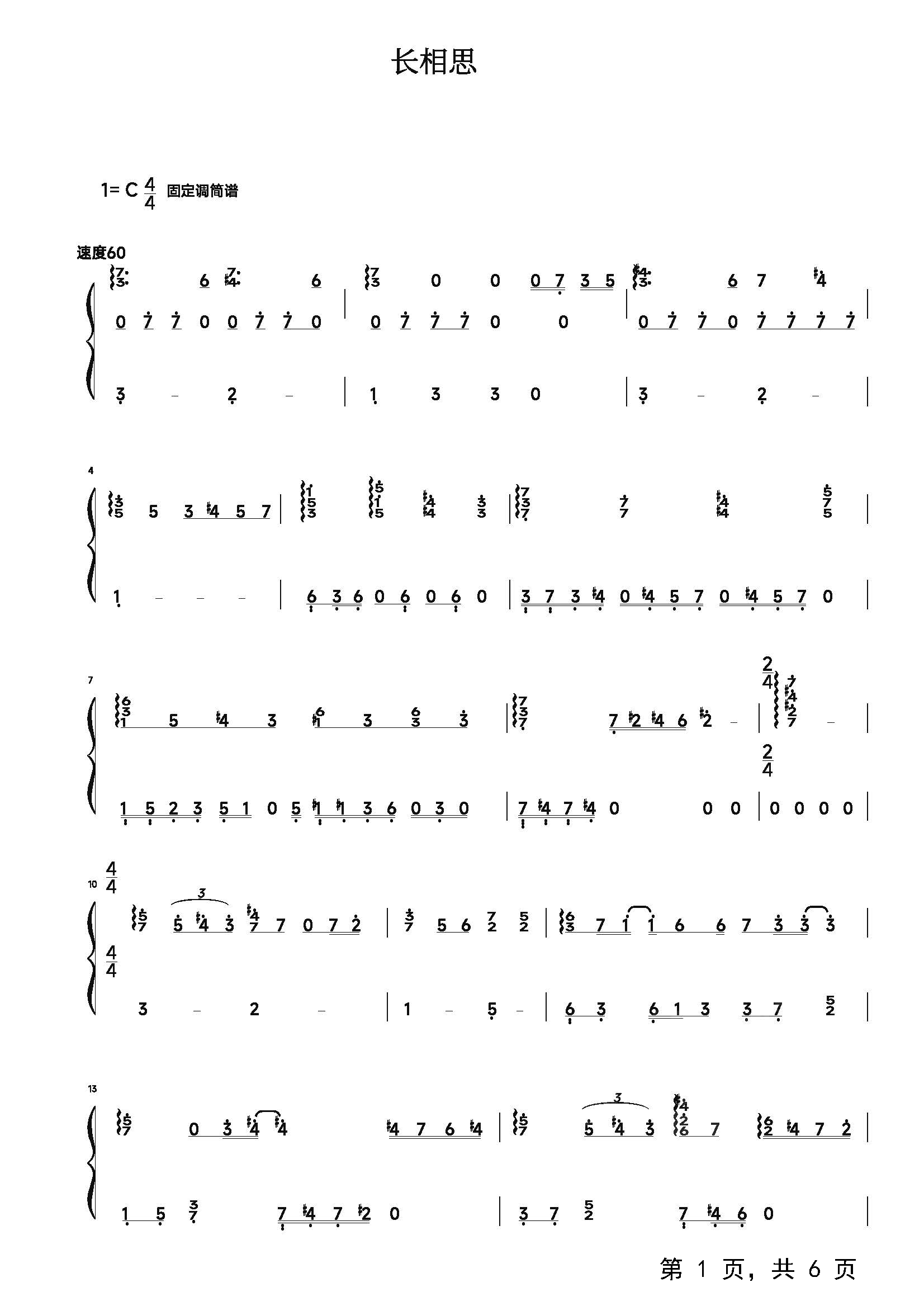 时暮的思眷钢琴谱