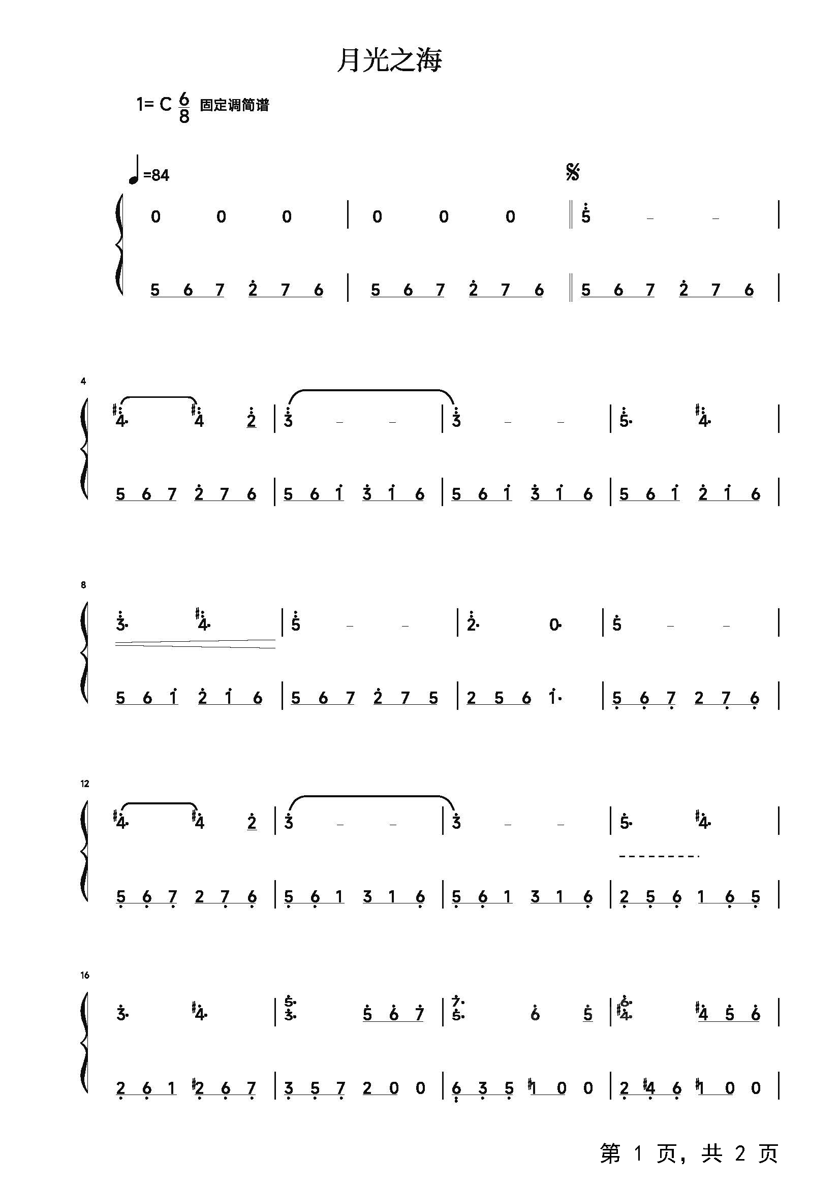 作品分类:钢琴简谱
