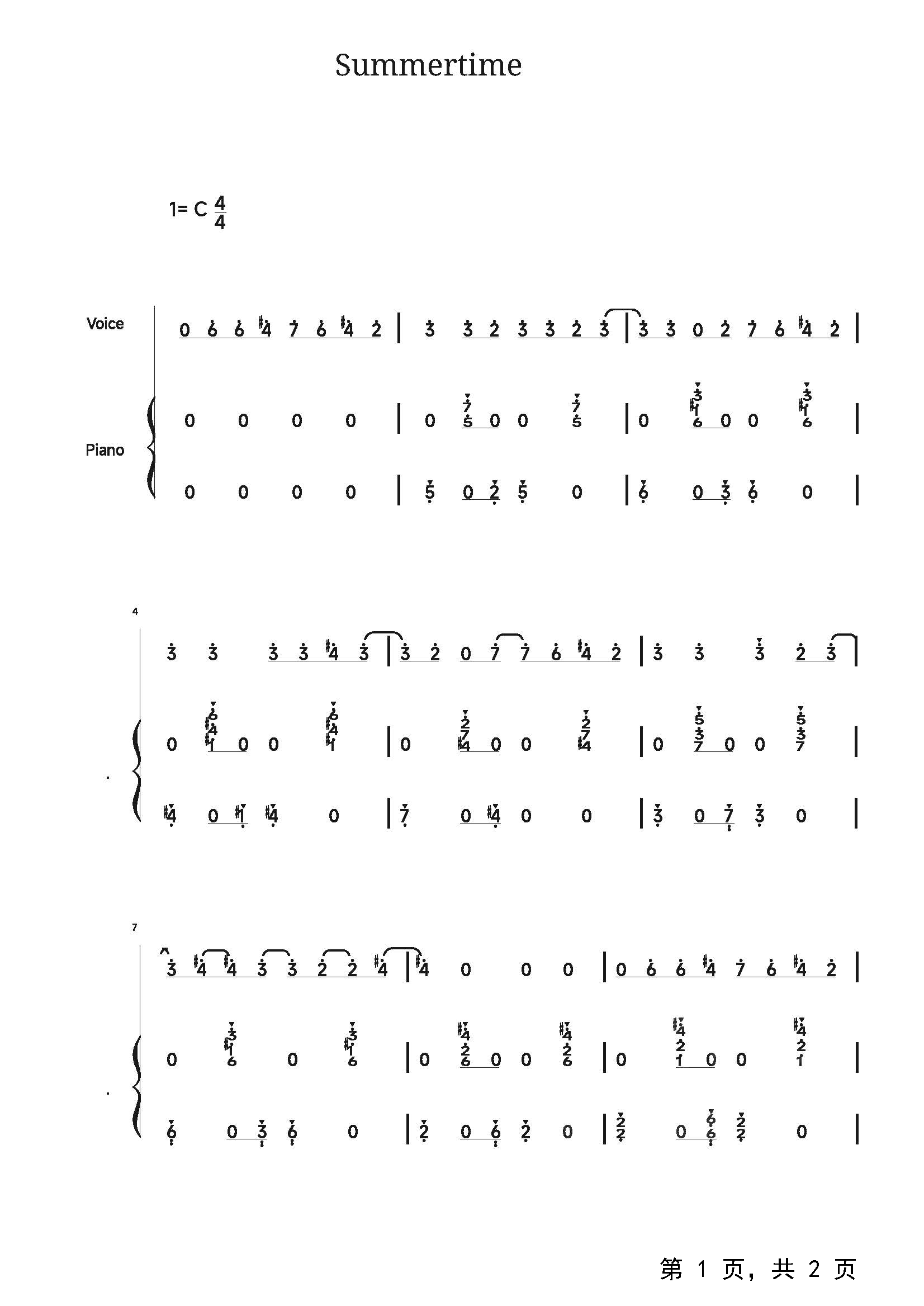 作品曲调:C调