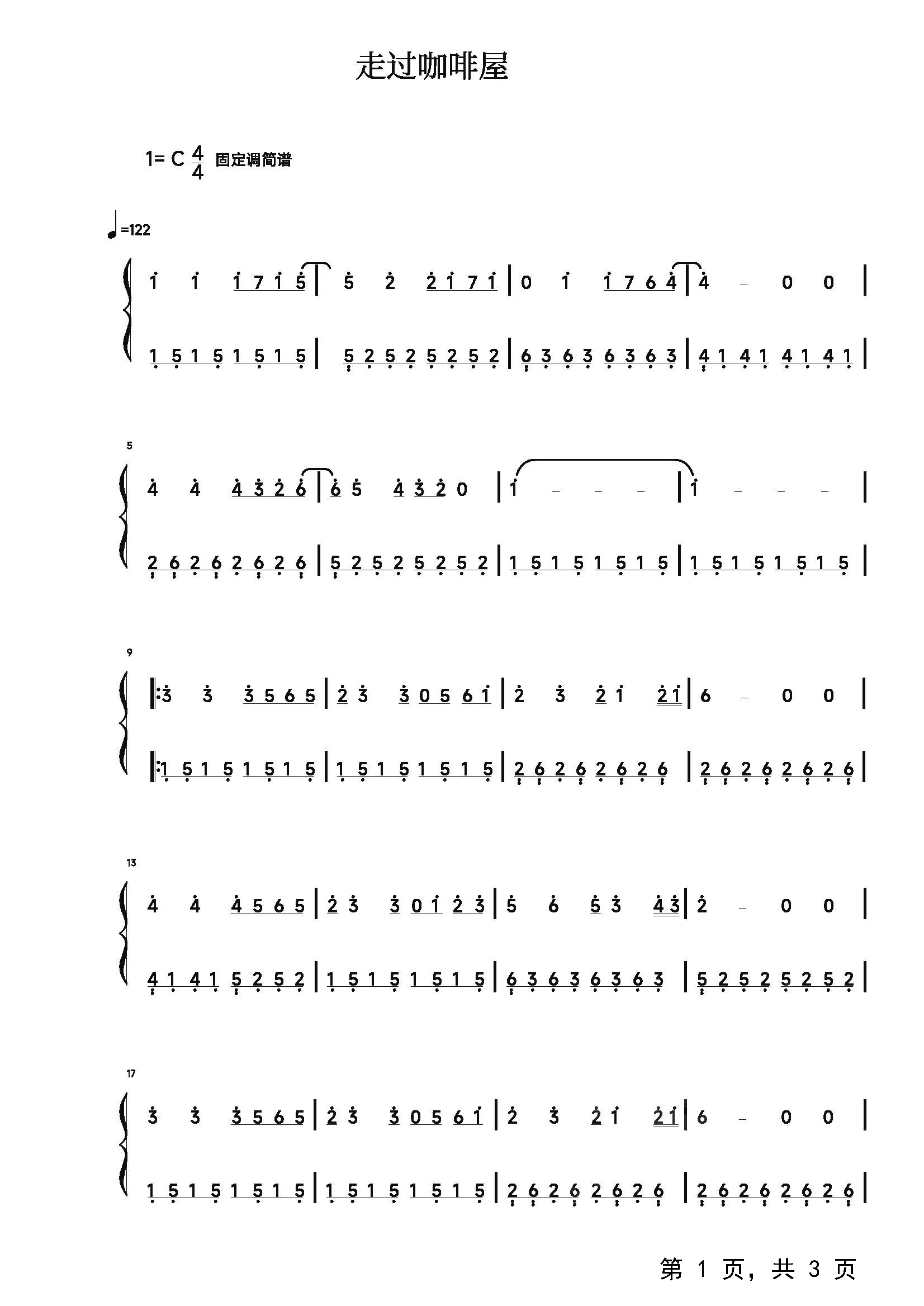 作品分类:钢琴简谱