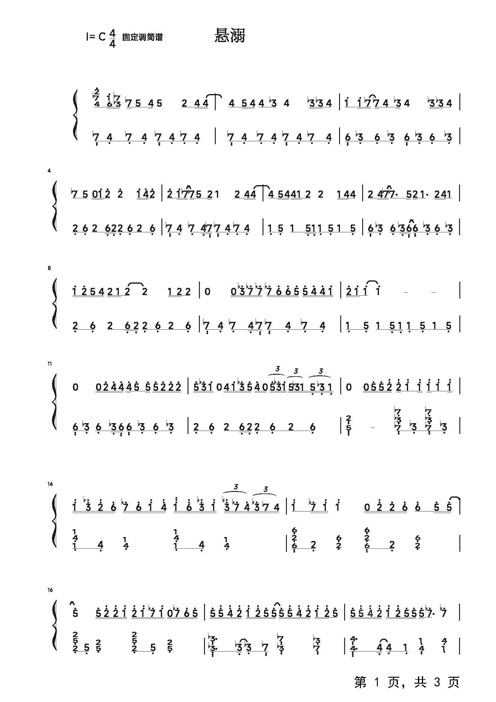作品曲调:C调