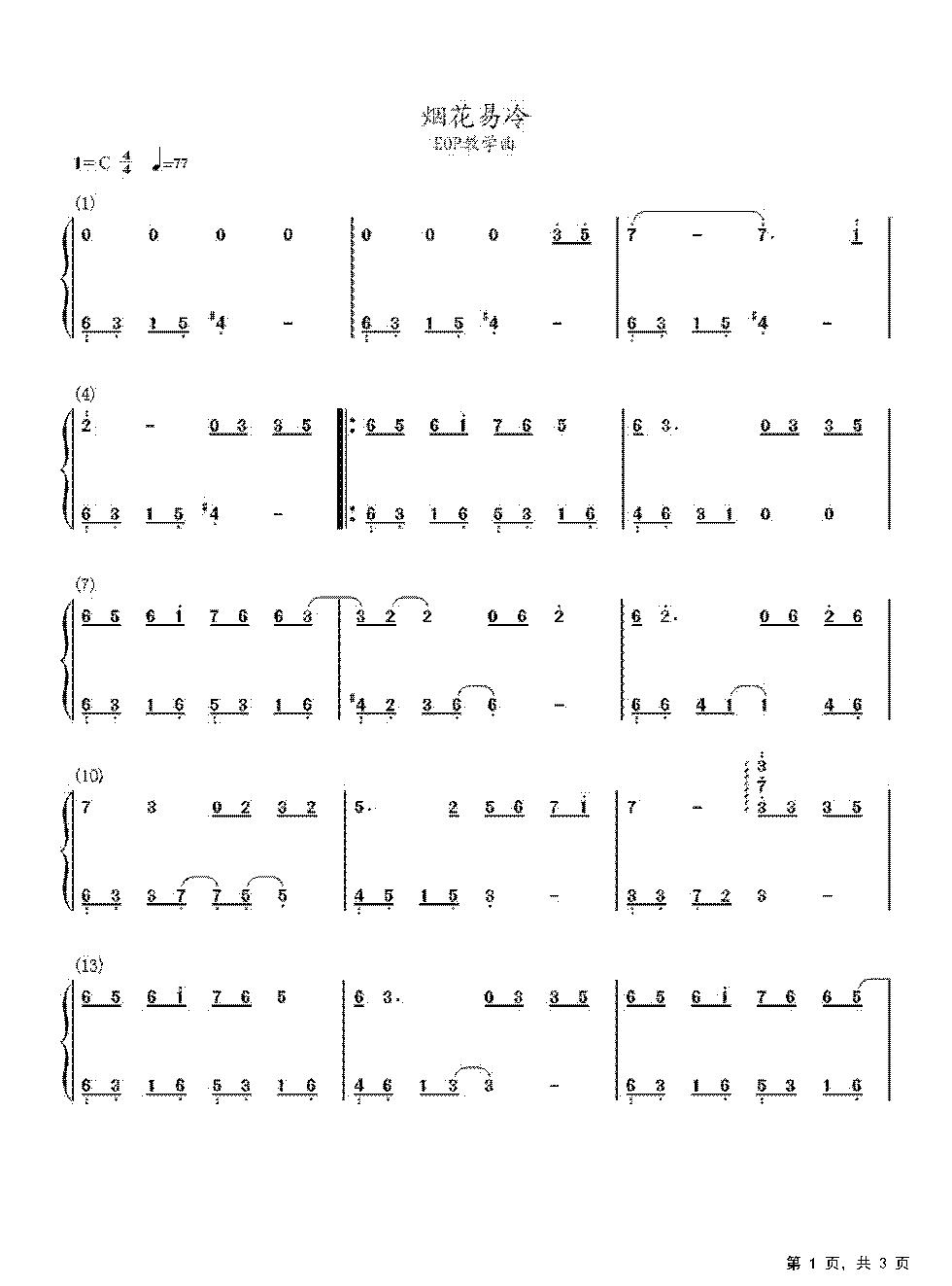 作品分类:钢琴简谱