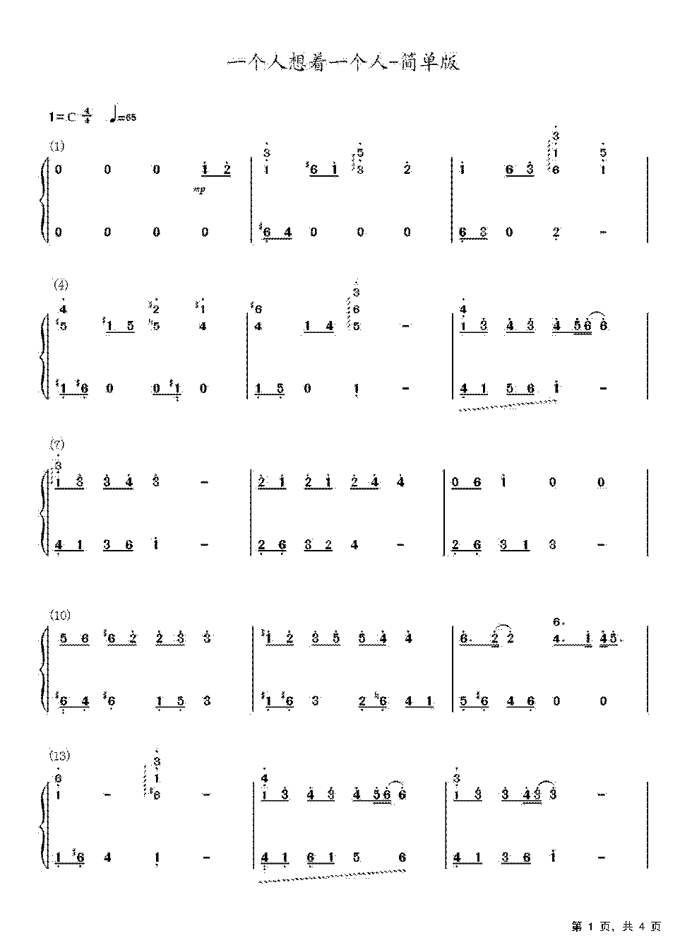 作品分类:钢琴简谱