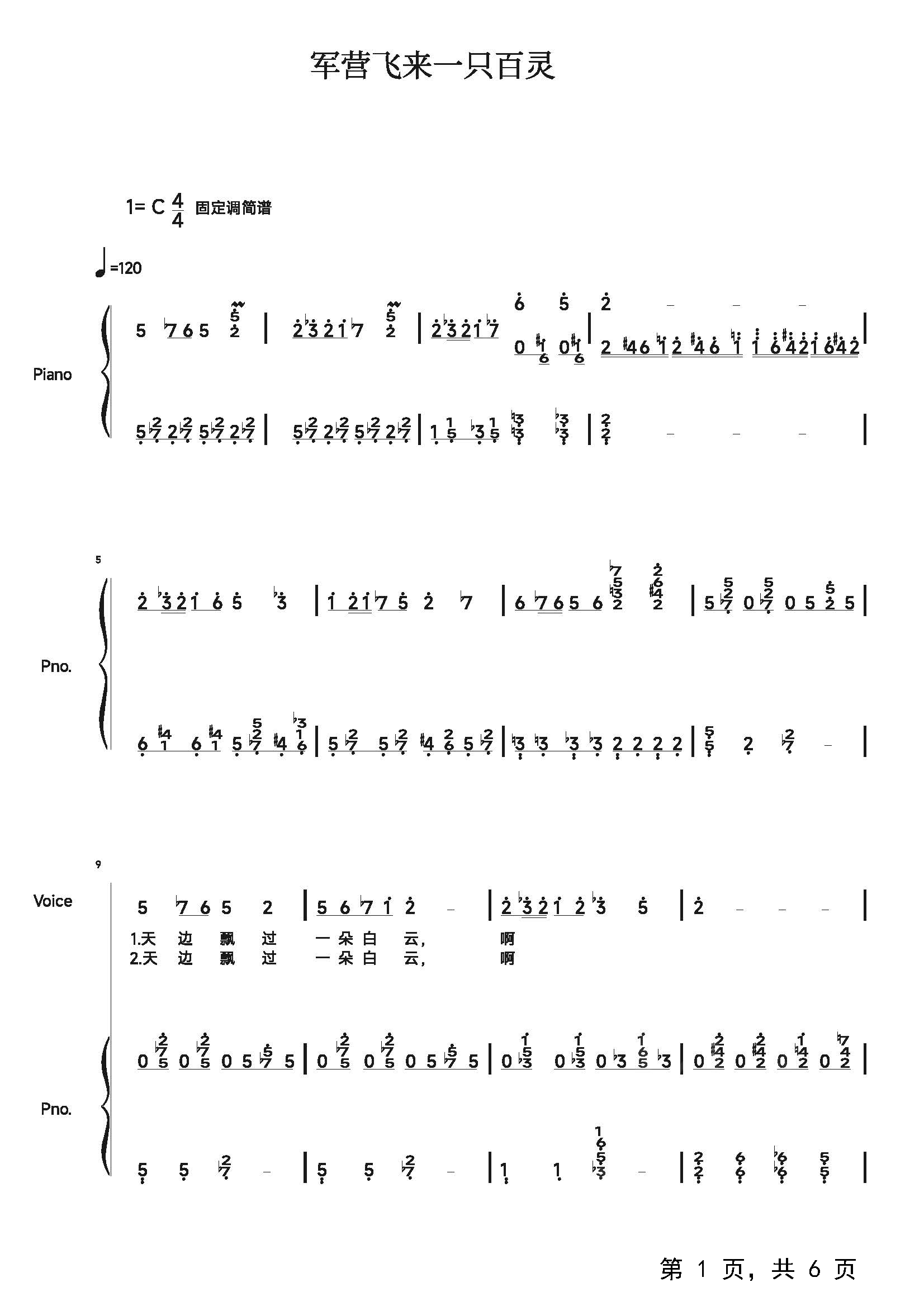 作品分类:钢琴简谱